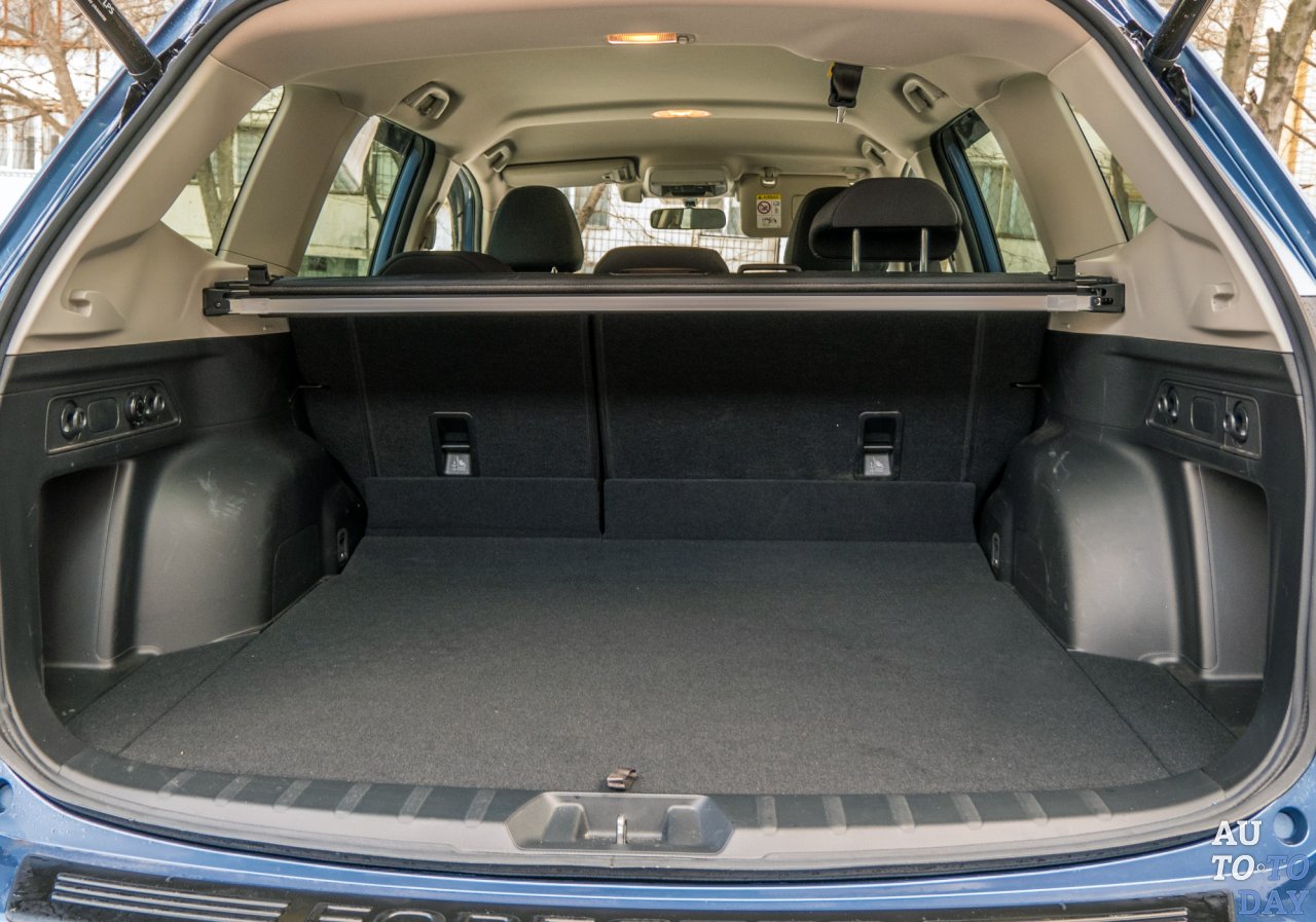 По словам конструкторов, проём багажника самый широкий в классе и позволяет грузить габаритные грузы больше, чем у одноклассников. Такого решения удалось достигнуть благодаря применению высокопрочных сталей в конструкции крыши и задней стойки. По умолчанию багажный отсек рассчитан на 505 литров поклажи, но со сложенным вторым рядом получаем 1775 свободных литров.