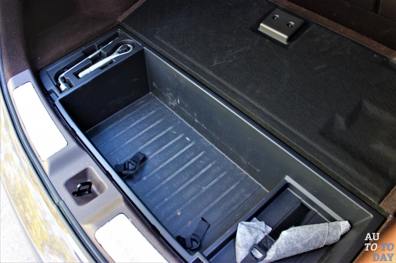 По умолчанию багажник готов принять 565 литров поклажи. Спинки второго ряда можно сложить одним движением. Материалы отделки даже в грузовом отсеке – на высоте. Под полом – второй аккумулятор, сабвуфер, а также ремкомплект для шин. О запасном колесе больше ни слова.