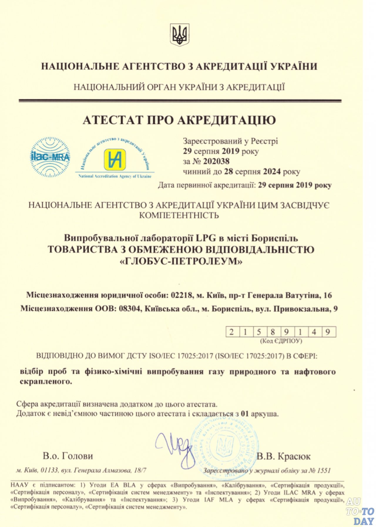 Современная лаборатория контроля качества газа, ООО «ГЛОБУС-ПЕТРОЛЕУМ» (г. Борисполь), тесно взаимодействующая с компанией WOG, в августе 2019 года успешно прошла государственную аккредитацию на соответствие требованиям по новой версии стандарта ДСТУ ISO/IEC 17025:2017 в Национальном агентстве Украины по аккредитации.