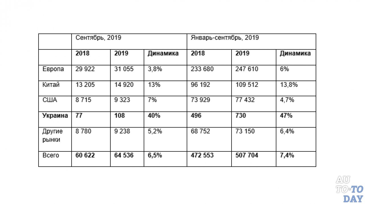 За 9 месяцев 2019 года мировые продажи Volvo выросли на 7,4% в сравнении с аналогичным периодом в 2018 году. С января по сентябрь 2019 года компания реализовала 507 704 автомобиля, из которых 64 536 — в сентябре, что на 6,5% превышает показатель за сентябрь прошлого года.