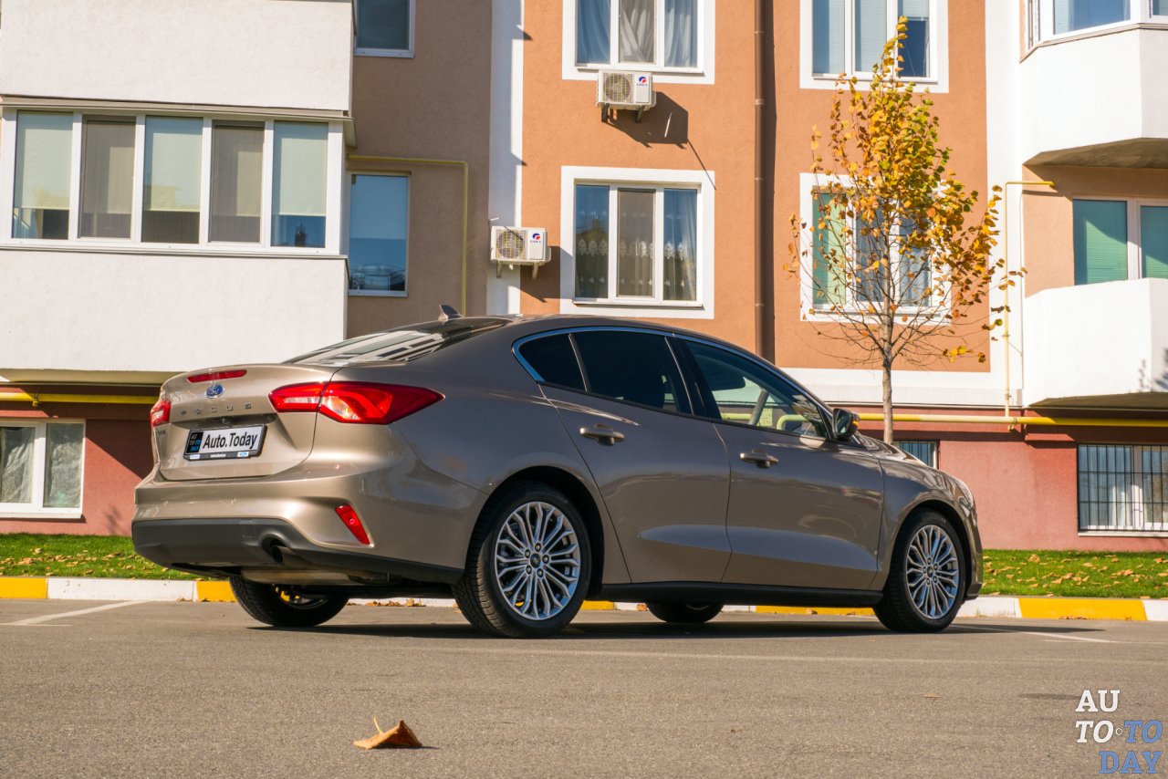 Первый взгляд на автомобиль – и уже внутренний спор. Цвет Diffused Silver, или «Рассеянное серебро» в техпаспорте записан как бежевый. Хотя в зависимости от освещения, от переливается с серого до коричневого. Красиво и стильно. Всего же для новинки предложено 13 цветов кузова. Четвертое поколение «Фокуса» получило внутреннее обозначение C519. В сравнении с предшественником, главный прирост в габаритах пришелся на колесную базу – добавилось целых 53 мм. Визуально седан кажется более стремительным. Все благодаря удлиненному капоту и более заваленным передним стойкам.