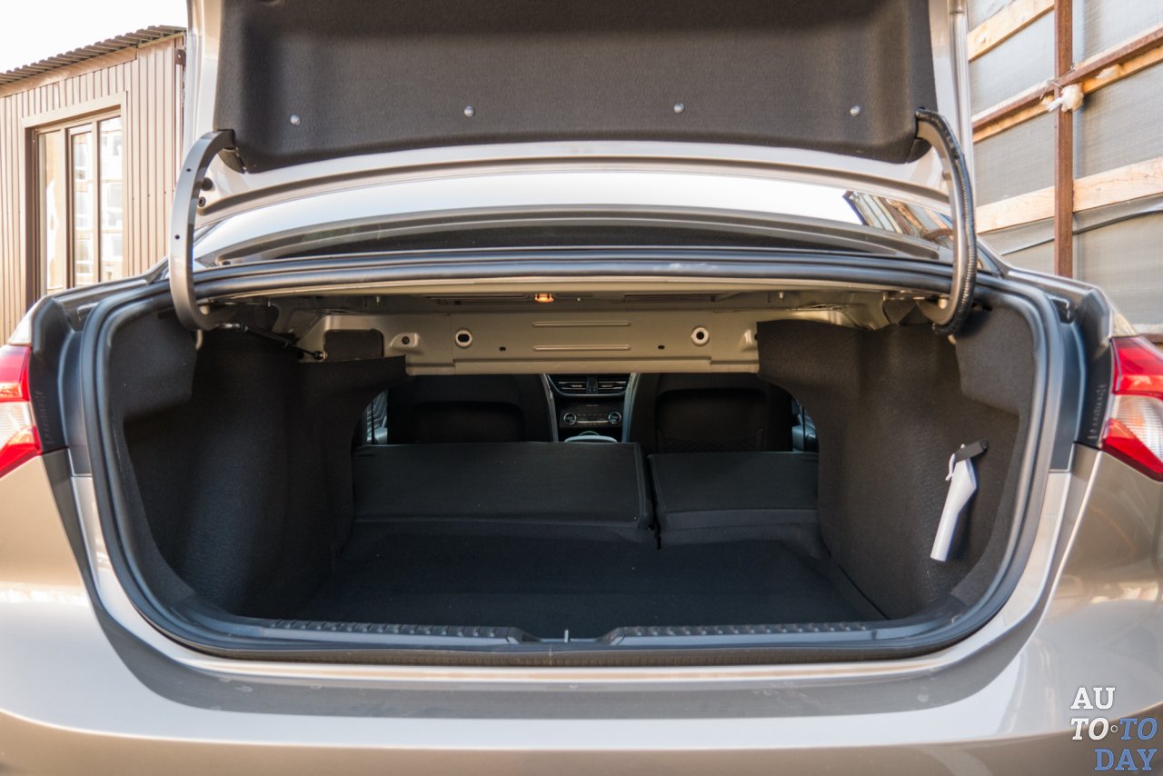 В багажный отсек объемом 511 литров нужно аккуратно грузить багаж через широкий задний бампер. Если сложить спинки второго ряда, то получим не самый широкий проем – часть пространства крадут усилители кузова. Под полом – временное запасное колесо. Хотя для других европейских рынков существуют версии с ремкомплектом.