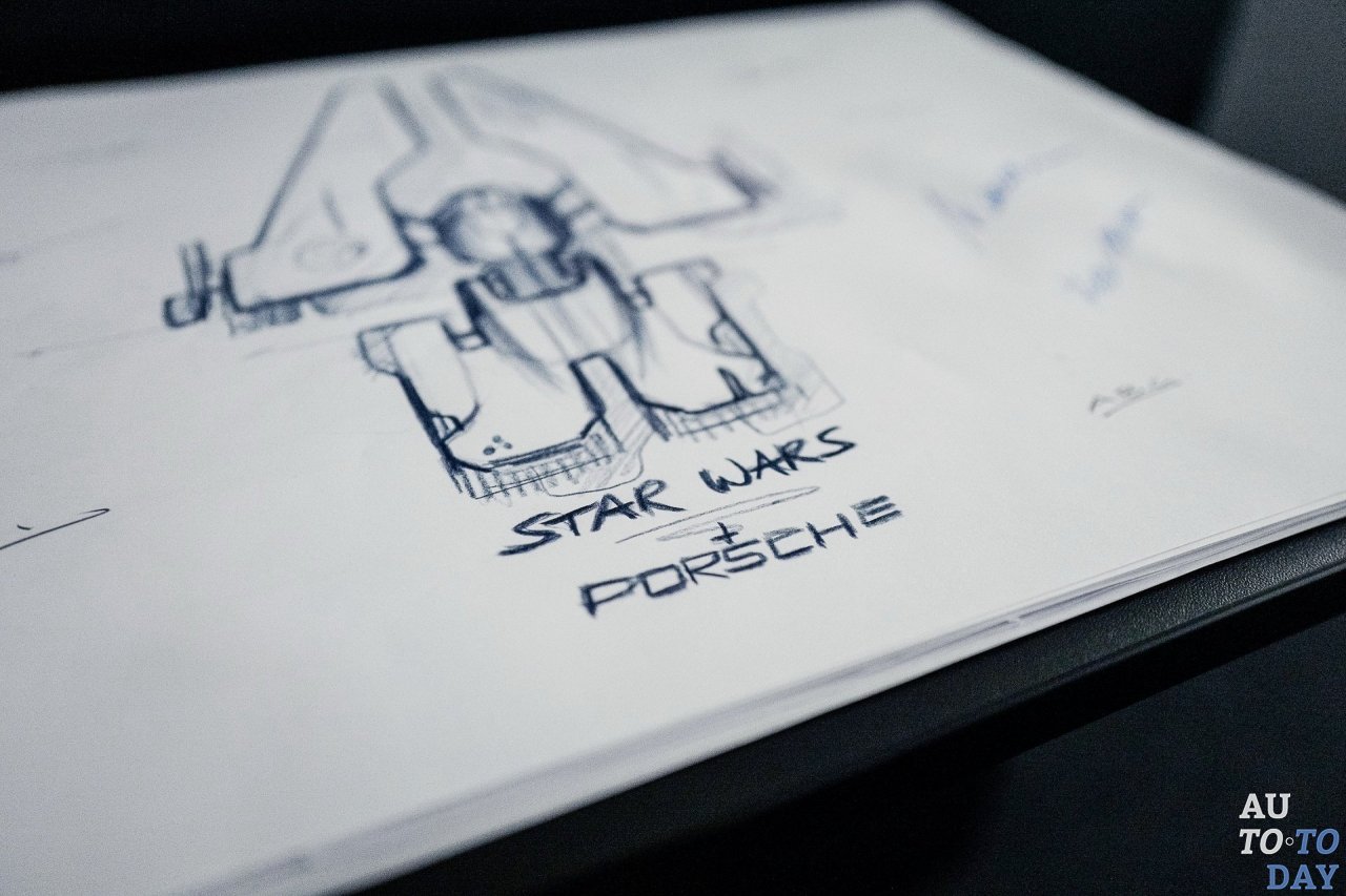 «В этом проекте мы объединяем два мира: экзотический кинематографический дизайн далёкой галактики и совершенную работу, связанную с реализацией эмоциональных спортивных автомобилей Porsche» — прокомментировал исполнительный креативный директор и по совместительству вице-президент Lucasfilm Дуг Чианг (Doug Chiang). «Это сотрудничество позволит создать впечатляющий дизайн, что совместит лучшее обеих компаний и создаст захватывающий космический корабль, достойный Porsche и Star Wars».