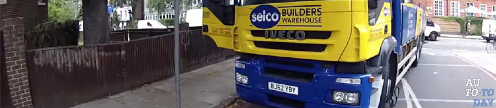 Видеозапись, заснятая от установленной на шлеме камеры мотоциклиста, показывает тот закричал "F *** Hell !" от того , что большой грузовик направляется прямо на него на перекрестке в Лондоне.