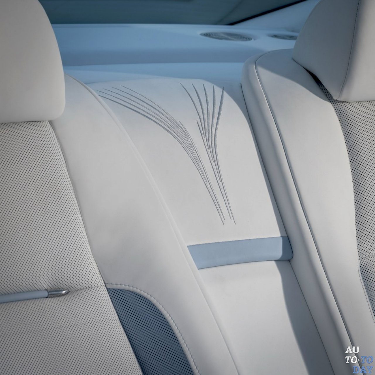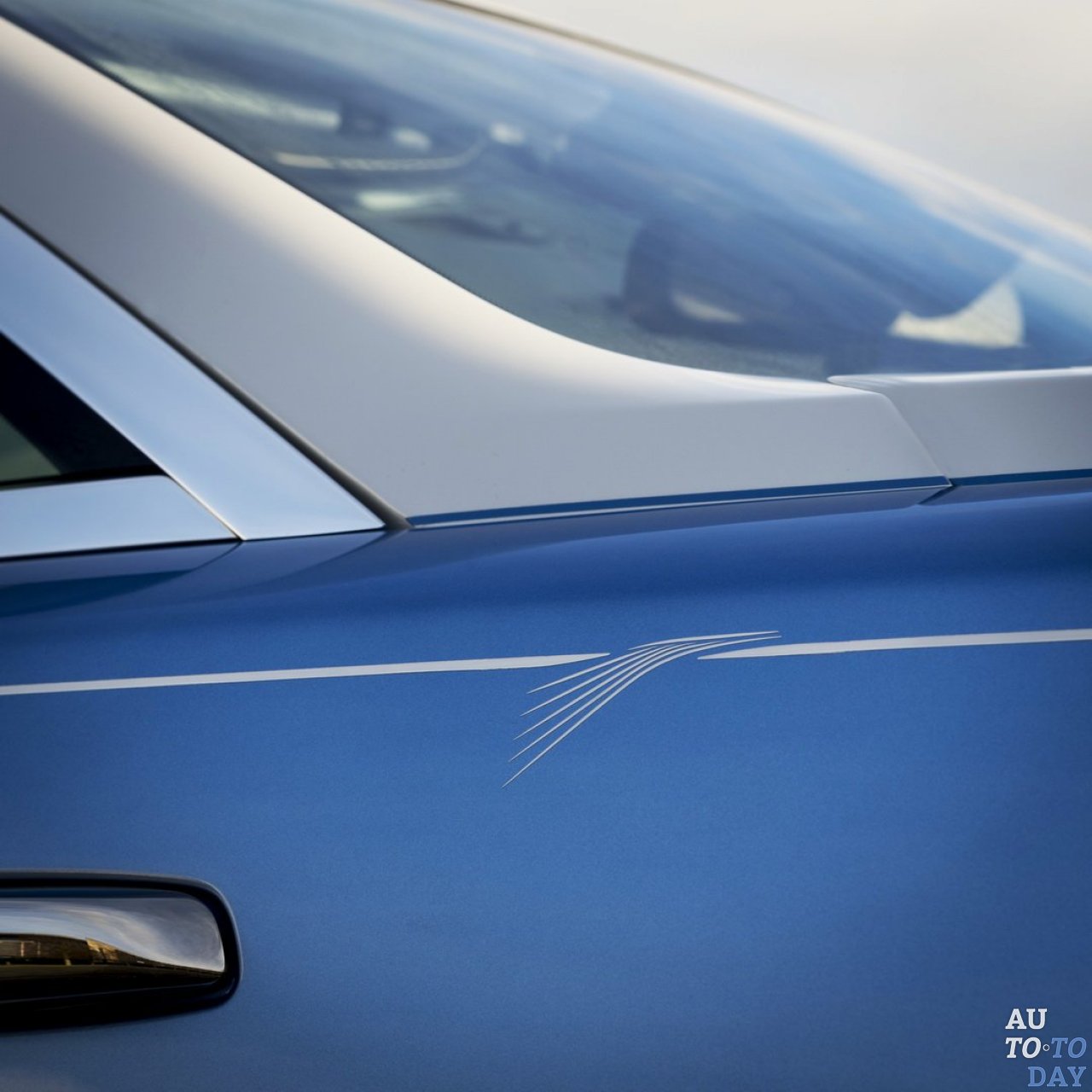 Помимо нестандартной вышивки сапсана, этот Rolls-Royce Wraith включил схематическое изображение крыла птицы, эксклюзивные часы, выполненные на заказ, и внешнюю отделку в оттенках Bala Blue и Andalusian White.