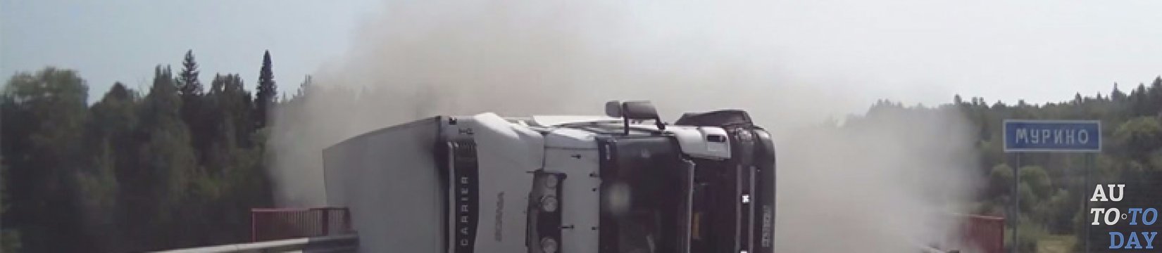 Грузовик с полуприцепом транспортировал овощи, когда внезапно одна из его шин лопнула, заставив водителя потерять контроль. В итоге грузовик опрокинулся и продолжил свой страшный дрейф к автомобилю с видеорегистратором, который и смог запечатлить всю сцену. К счастью, грузовик остановился всего за несколько метров от автомобиля.