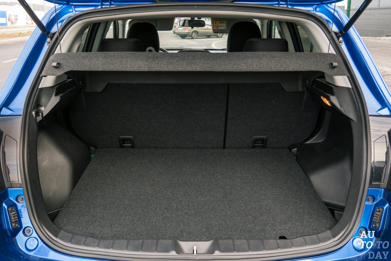 Багажный отсек в версии с ремкомплектом имеет объем около 406 литров. Но в нашей же модификации предложен вариант с полноразмерным запасным колесом, так что места действительно меньше - 358 литров. Главный момент – это небольшая полезная высота багажника. Хотя в такой конфигурации отсутствует нежелаемый порожек, да и при необходимости можно сложить спинки второго ряда.