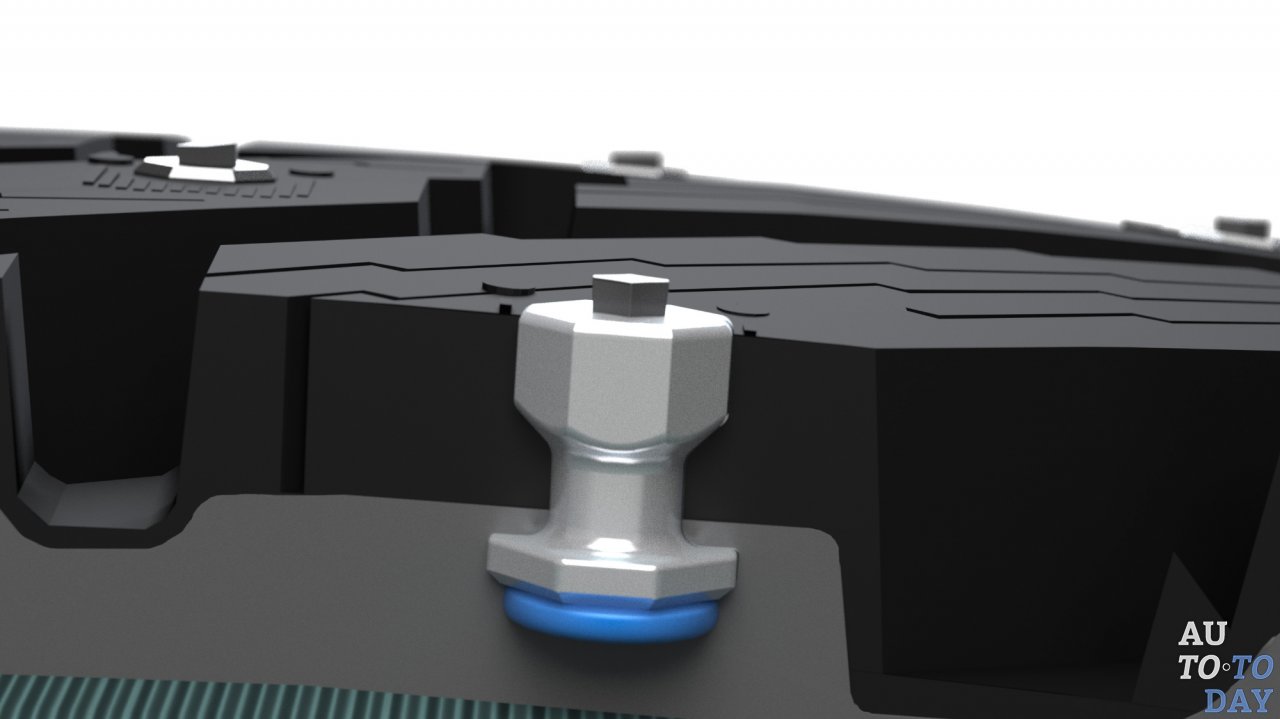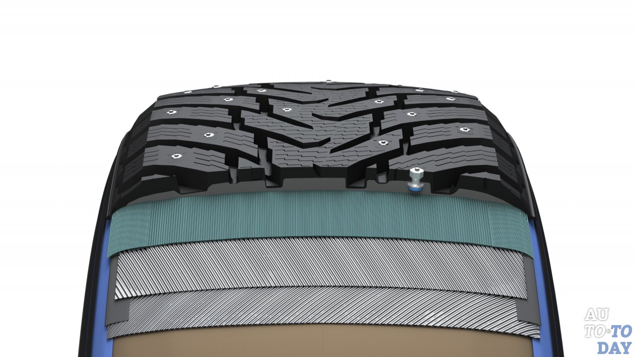 С точки зрения конструкции данная модель отличается большим количеством шипов (в среднем +50%) и большим количеством блоков протектора при меньшем размере каждого. Восьмигранный шип встроен в резину по технологии EcoStud 8 – он легче (- 0,5 мм) и короче прежнего (- 20%), а на дне гнезда его подпирает резиновая подушка с пневмо-эффектом. Вообще-то это сделано для снижения износа асфальта, регламентированного в европейских странах. Но в Украине эффект EcoStud 8 важен лишь с точки зрения комфорта: облегченный шип мягче ударяется о дорогу, а значит, шума от качения «зубастых» колес должно быть меньше.