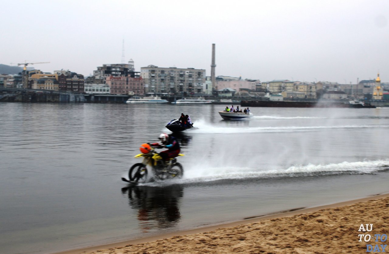 Сегодня, 24 декабря, каскадер и участник команды Spirit Racing Team Сергей Совяк при поддержке компании Liqui Moly Ukraine установил Рекорд Украины, а именно проехал на кроссовом мотоцикле по открытой воде (по Днепру) пять километров. Пересечь Днепр почти обычном кроссовом мотоцикле - такого в Украине не сумел сделать еще никто. И в мире смельчаков, которые смогли бы преодолеть существенное расстояние таким образом, единицы.