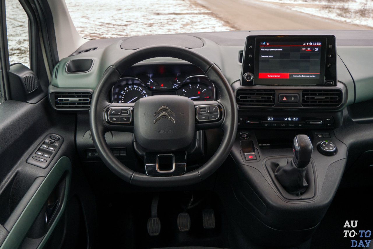 Пассажирский фургончик получил разнообразные ассистенты водителя: в списке опций есть круиз-контроль, автоторможение, даже Grip Control — система, которая позволяет настраивать ESP в зависимости от типа покрытия. Работу последней нам удалось проверить на подмерзшем грунте.