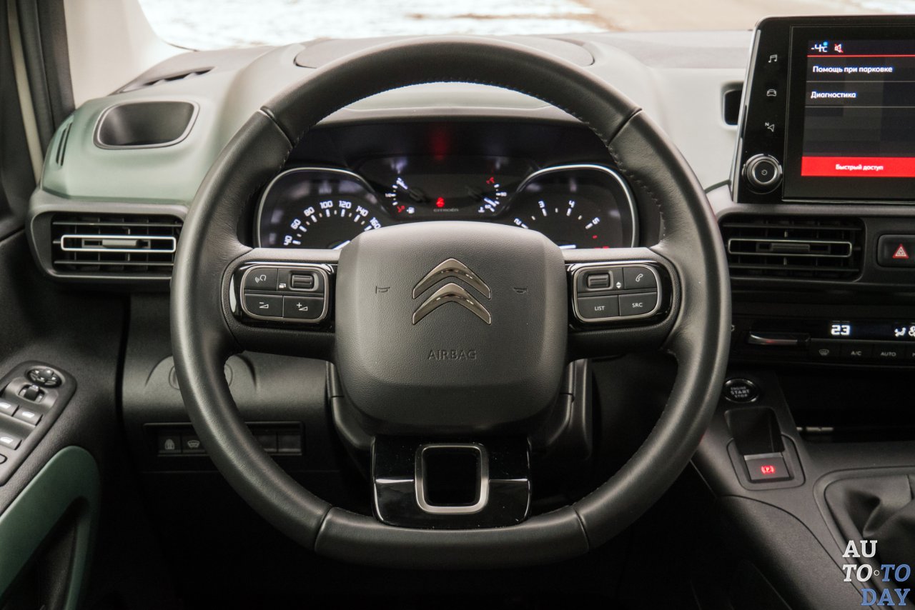 Водителя может огорчить тот факт, что для автомобиля с 92-сильным турбодизелем круиз-контроль даже в максимальной комплектации Shine доступен только в качестве опции. Но удобная, почти вертикальная посадка, и широкая площадка для отдыха левой ноги позволяют ногам отдыхать. Но сам 1,5-литровый турбодизель отлично подходит для дальних путешествий. Судите сами – с полной загрузкой и средней скоростью в 80 км/ч «француз» расходует по трассе 5,8-5,9 литра на 100 км. Когда в салоне остается только три человека и мелкий груз в багажнике, на этом же маршруте с такой же скоростью бак опустошается медленнее, и расходометр показывает значение в 5,2-5,3 литра.
