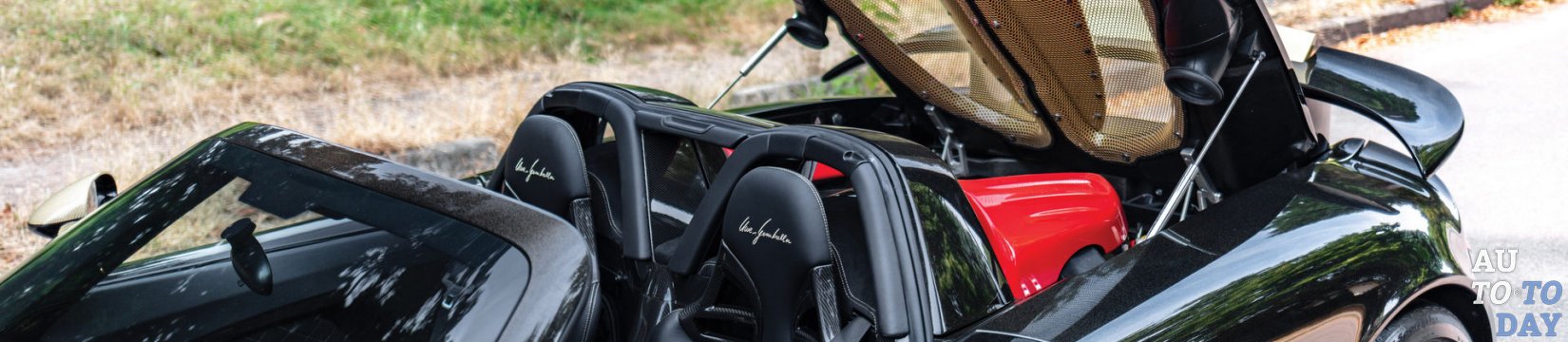 Внутри автомобиля доминирует кожаная обивка, отделка из карбона, золотые акценты и алькантара, применённая для украшения руля.
