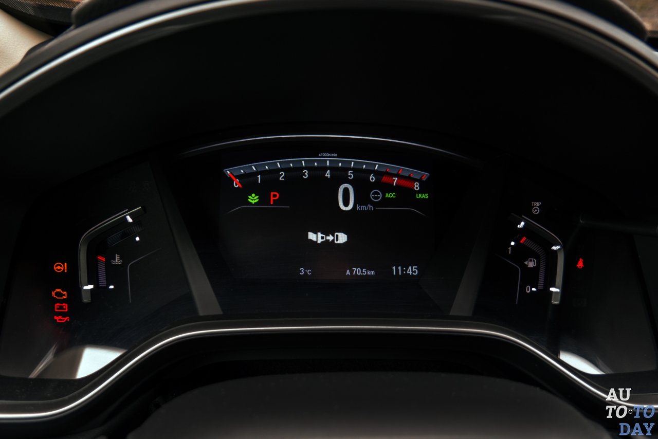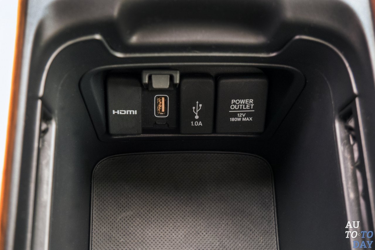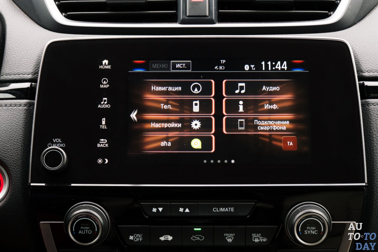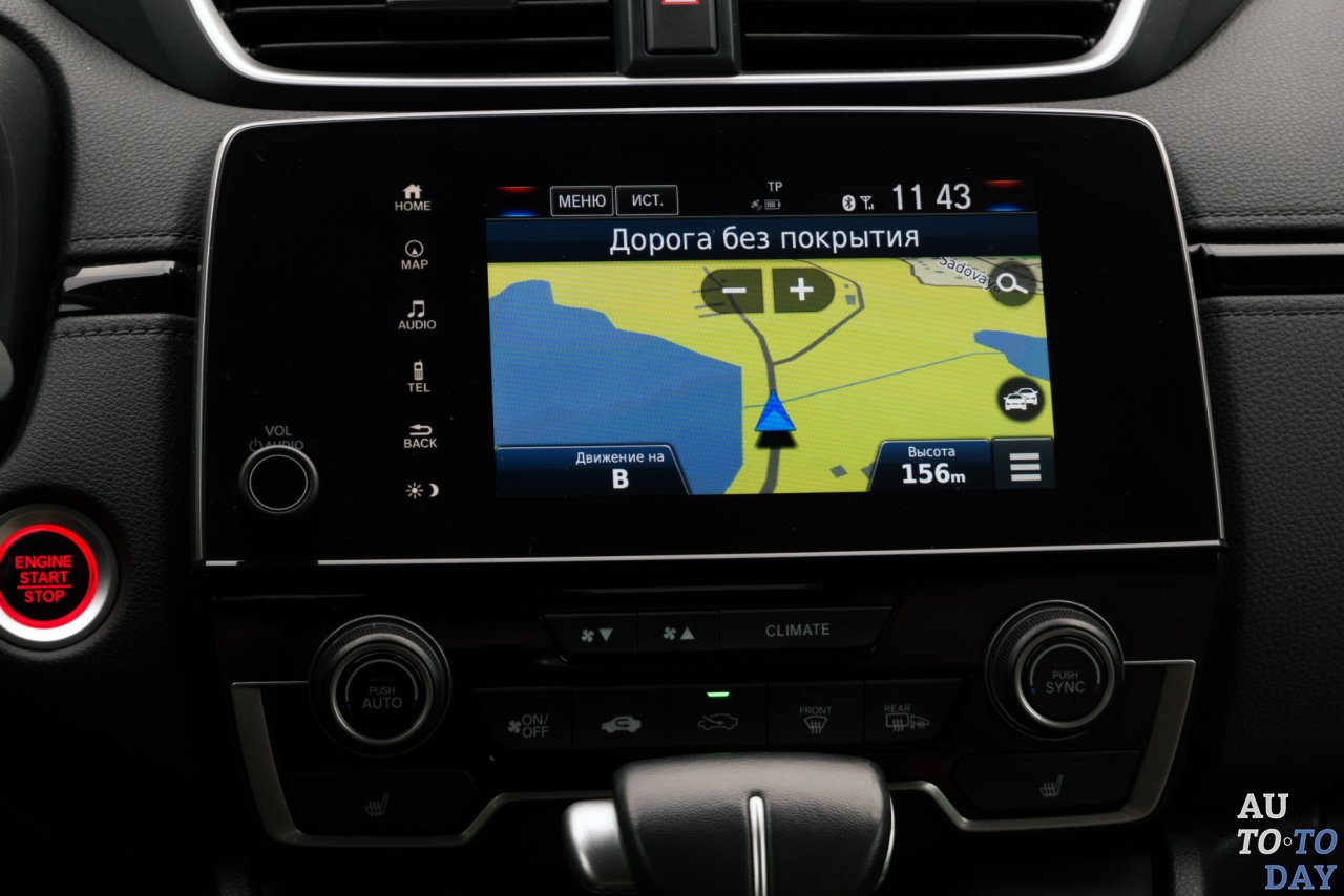 В сравнении с младшенькой, с Honda HR-V, у героя нашего теста мультимедийная система справедливая. Она одинаково хорошо дружит с фирменными протоколами Apple CarPlay и Android Auto. Кроме того, инфотеймент имеет встроенные виджеты (калькулятор, календарь с событиями и пр.). Встроенная навигация Garmin отлично знает Киев, но вместе с тем самокритична – ругается, что может быть неактуальной ввиду того, что не обновлялась около года. К минусу эргономики я бы отнес необходимость отвлекаться от дороги, и углубляться в меню, чтобы настроить направления обдува и включение кондиционера. Центральная консоль сделана многоэтажной: там уместились и разные двигающиеся полочки, и подстаканники, и россыпь портов (USB, HDMI, 12-вольтные розетки и пр.).