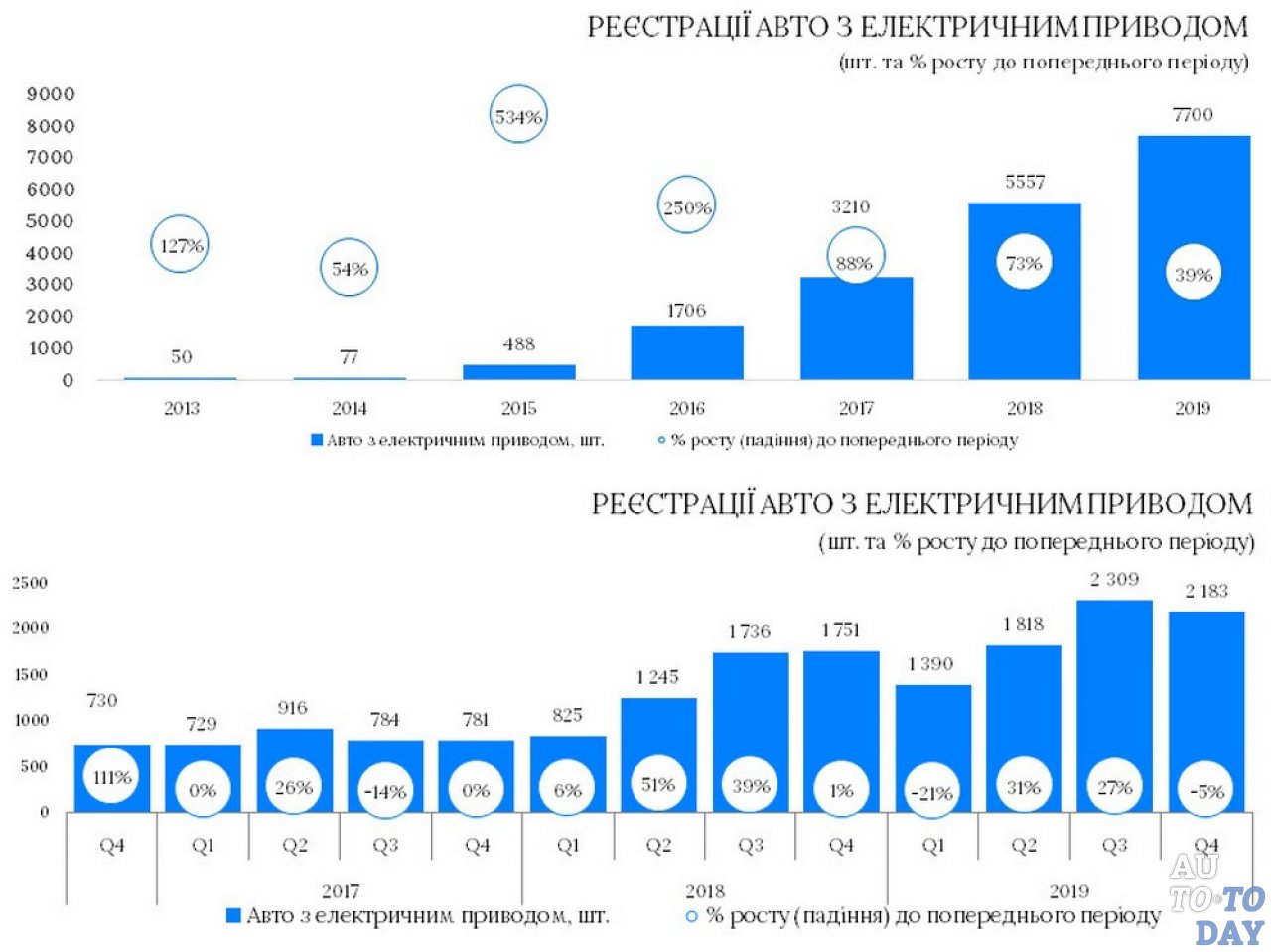Согласно сообщению пресс-службы Федерации работодателей автомобильной отрасли Украины, в 2019 году в нашей стране государственную регистрацию прошли 7,7 тысячи электромобилей. Это на 39% больше, чем в предыдущем году. Примечательно, что в четвёртом квартале прошлого года авто на электрическом ходу было куплено на 5% меньше, чем за аналогичный период 2018 года, передаёт ЦТС.
