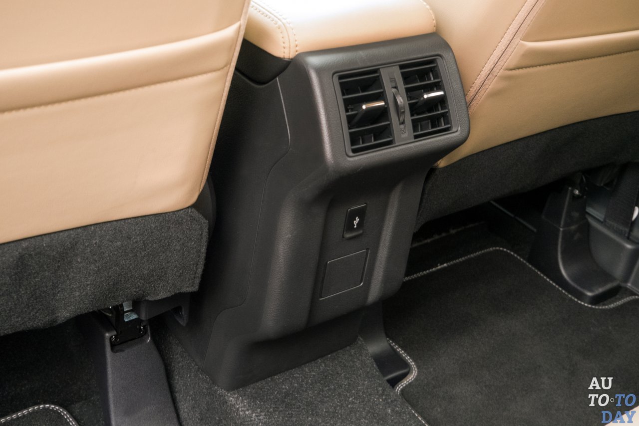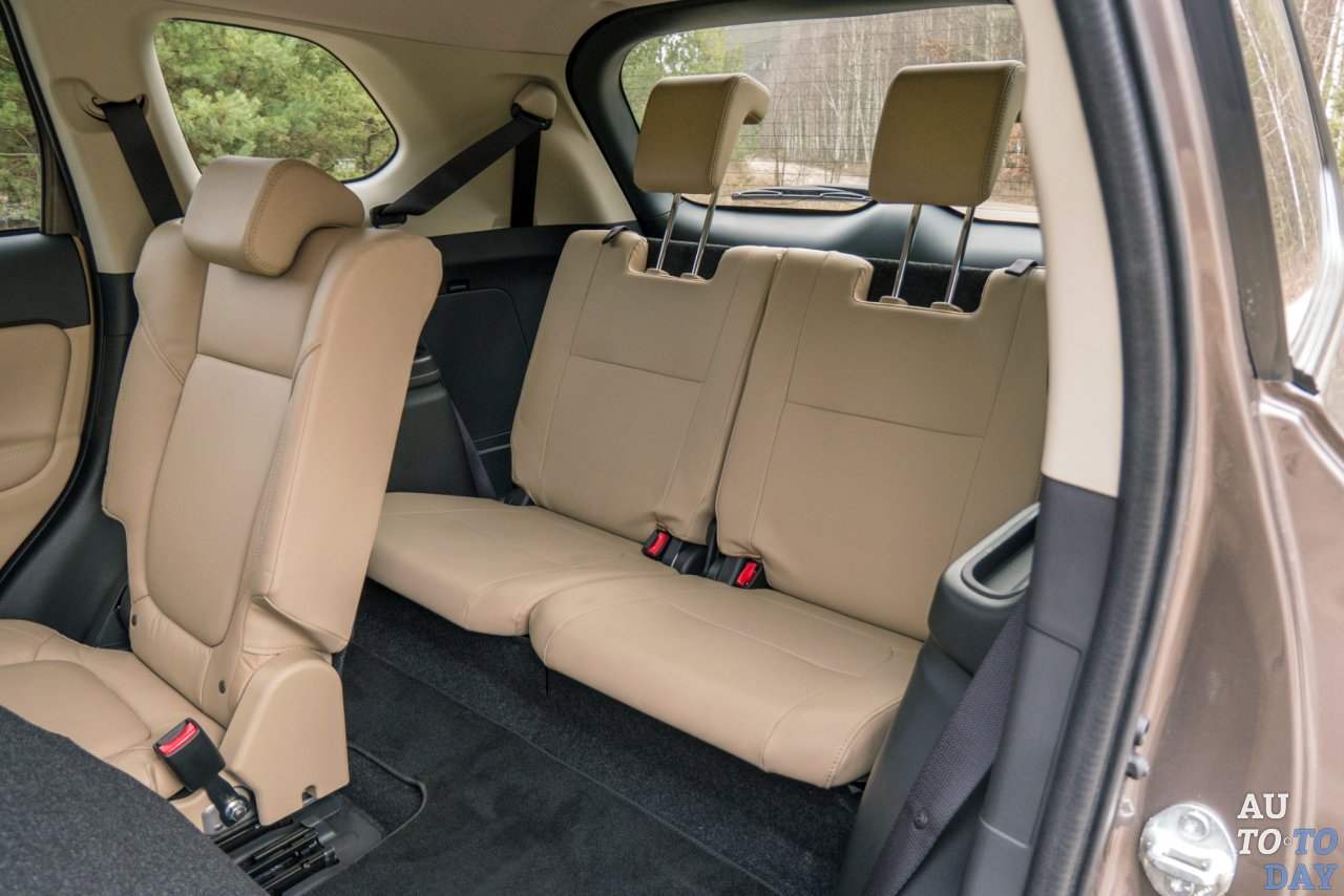 Третий ряд – это безусловное преимущество. Туда отлично становится детское кресло, также там комфортно будет паре первоклассников. Но даже на короткие расстояния взрослым там будет некомфортно. Посадку и высадку с третьего ряда облегчает по частям сдвигающийся второй ряд. В распоряжении пассажиров среднего ряда – дефлекторы обдува и розетка для зарядки девайсов.