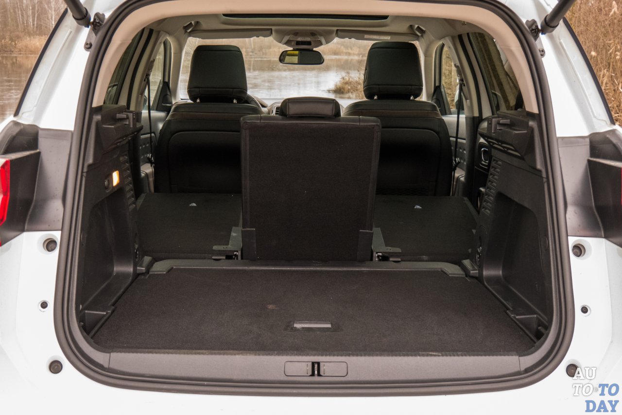 Крышка багажника и закрывается, и открывается по взмаху ноги. Редкий случай, когда в моем исполнении все срабатывало с первого раза. В зависимости от положения заднего ряда, и «сложенности» его спинки, для багажа остается от 580 до 1630 литров.