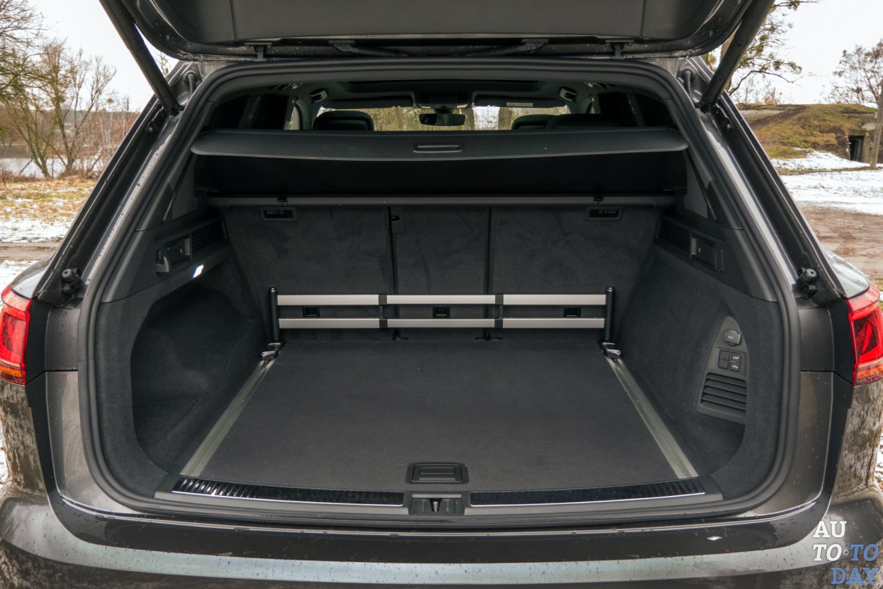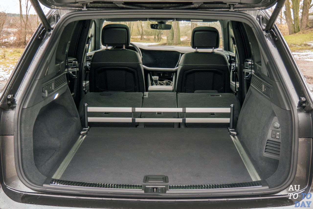 «Двойные стеклопакеты» и современные виброизоляционные материалы делают «Туарег» одним из самых тихих машин в классе. Первыми становятся слышны зеркала, за ними колеса. Но все шумы проникают в салон уже на скорости, за которую даже на магистрали можно получить штраф. Объем багажника по умолчанию - 810 литров. Под полом разместилась «докатка» и сабвуфер. Спинки заднего ряда складываются в пропорции 40:20:40. В двухместном варианте грузовой отсек уже готов принять 1800 поклажи. Если нужно погрузить что-то тяжелое, то пневмоподвеска позволяет опустить корму на 40 мм.