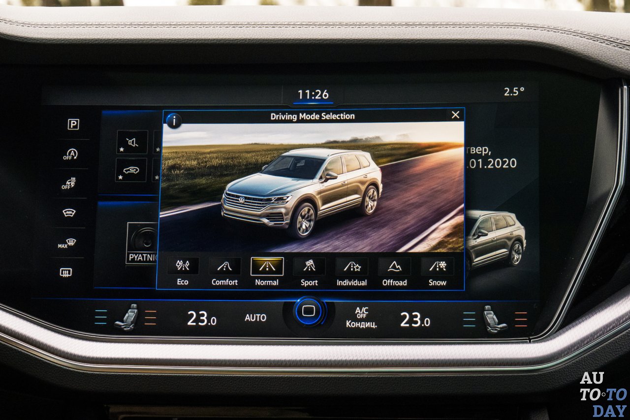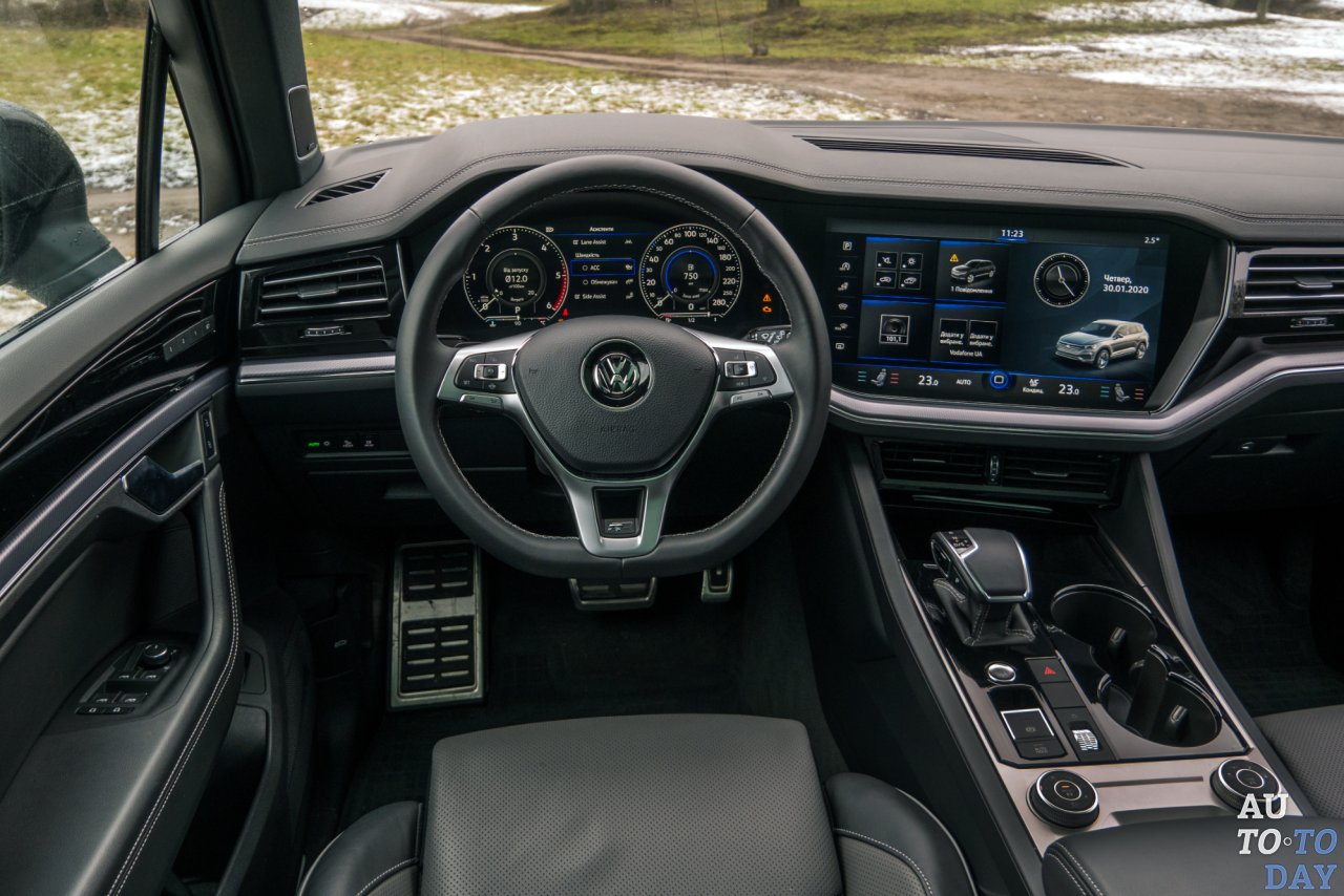 Новый Touareg переехал на платформу MLB Evo, на ней же построен и новый Porsche Cayenne. Полноуправляемое шасси с электромеханическими активными стабилизаторами поперечной устойчивости обеспечивает едва ли не «хэтчбековскую» управляемость. Спереди установлена двухрычажка, а сзади — многорычажка. В режиме «комфорт» даже на 21-дюймовых колесах любые неровности почти нивелируются. Строгость ходовой заметна только на неидеальной дороге и на скорости свыше 90 км/ч – тогда подвеска зажимается, и становится более спортивной.