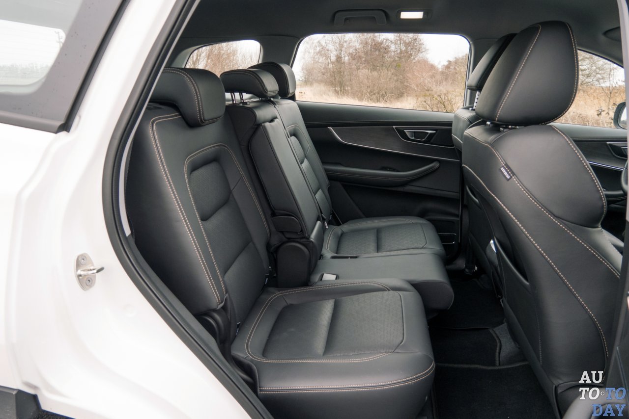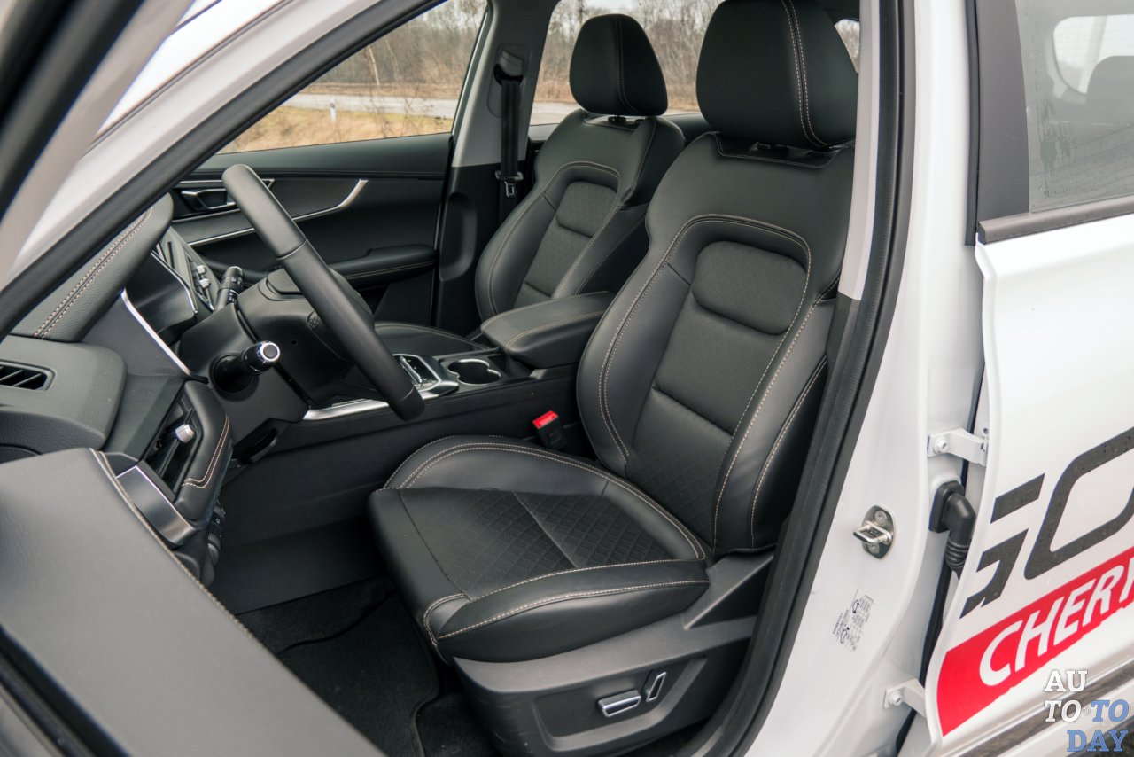 2710 миллиметров – такое значение колесной базы у «Тигго 8». Цифра так бы и осталась просто цифрой, если бы мы не посидели на всех трех рядах и не убедились бы, что сзади даже взрослые смогут расположиться. Но пойдем по рядам. Все сиденья обтянуты экокожей, которая выглядит презентабельно – без заломов, трещин, «пластиковых» запахов. Место водителя снабжено электроприводами. Спинке, пожалуй, не достает боковой поддержки.