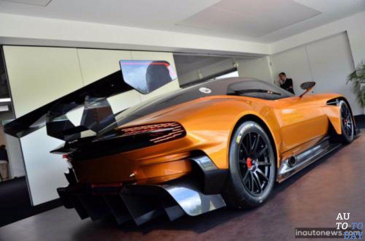 В испытательном центре Нюрбургринга выставлен великолепный оранжевый Aston Martin Vulcan. Этот суперкар является ответом Aston Martin на Ferrari FXX K и McLaren P1 GTR.