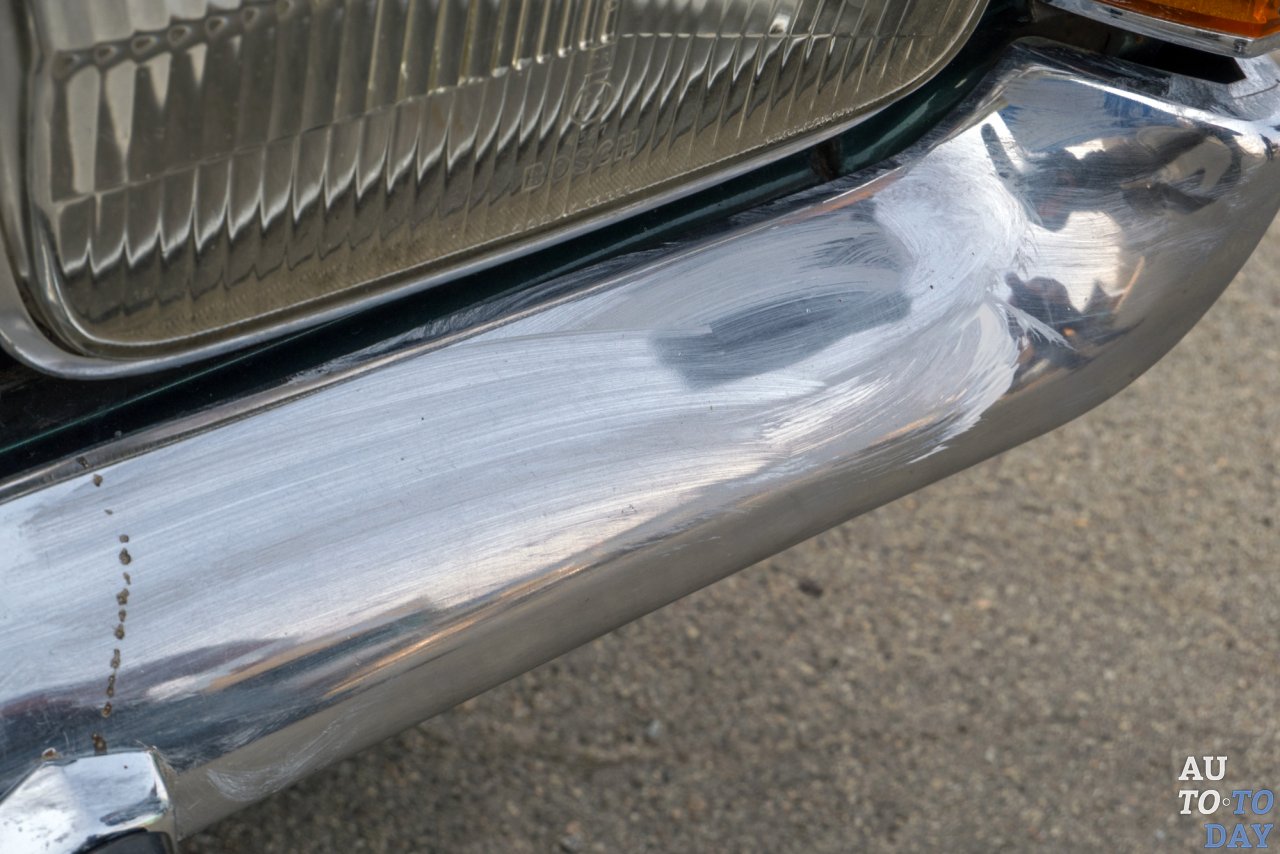 И вот, деталь натерта. Что мы видим? Если натереть половину бампера, разница между обработанной и необработанной частями будет хорошо заметна. Исчезло помутнение, мельчайшие царапины, да и блеска заметно добавилось. Даже если на хромированной детали есть вздутия хрома, то попавшая в повреждения полироль замедлит процессы коррозии. И хотя бы на некоторое время заберет следы ржавчины. Так что полировать имеет смысл даже не идеальные хромированные элементы.