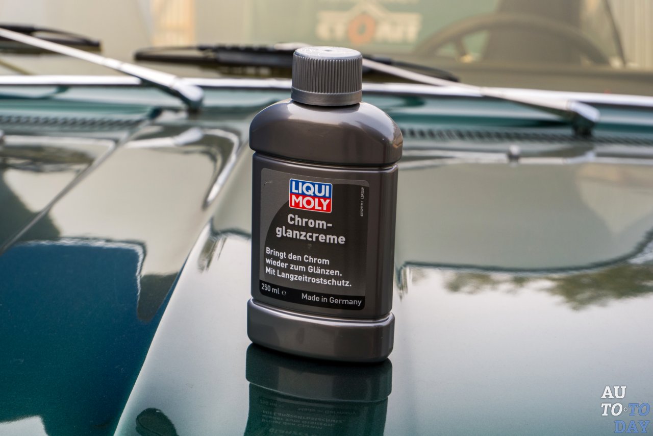 Когда хромированный бампер, колпак, или зеркало заднего вида высохло, можно приступать. В нашем арсенале – полироль для хромированных поверхностей Chrom Glanz-Creme от Liqui Moly. Согласно технологии, описанной в инструкции, необходимо нанести несколько капель полироли, по консистенции и по цвету похожей на нежирную сметану, на котоновую тряпочку и размазать по детали до образования тоненького равномерного слоя.