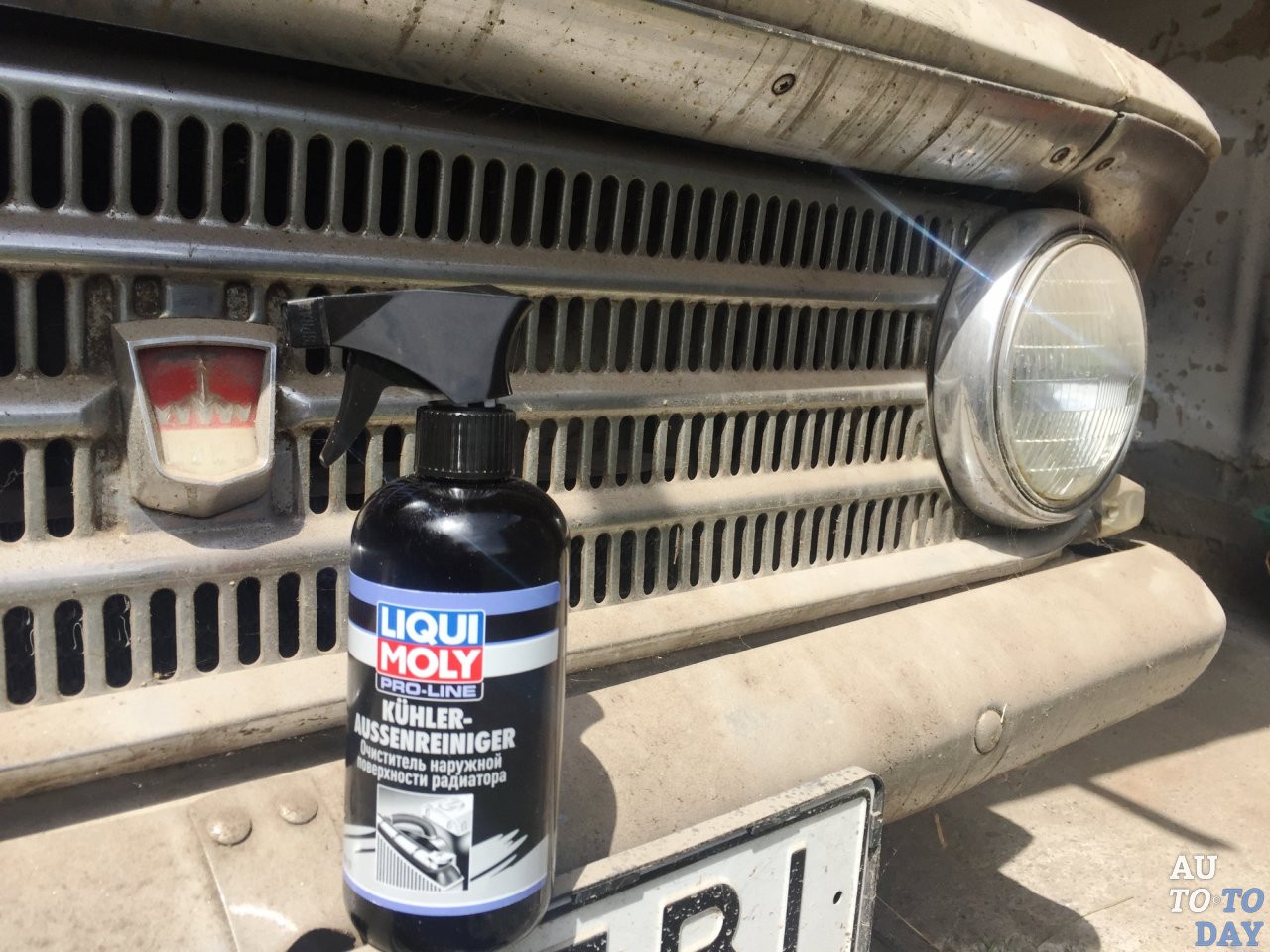 У нас на тесте очиститель радиатора от Liqui Moly– Kuhler Aussenreiniger. Согласно инструкции, жидкость рассчитана на поверхности любых радиаторов: системы охлаждения, кондиционера, системы смазки, и даже автоматических коробокпередач.