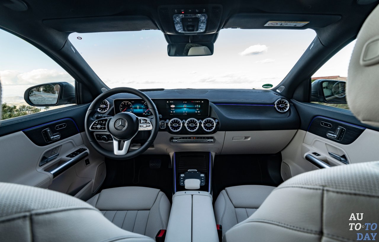 Интерьер нового компактного кроссовера имеет узнаваемые элементы компактных автомобилей Mercedes-Benz. Панель приборов может быть выполнена в трех вариантах: с двумя 7-дюймовыми дисплеями, или одним 7- и одним 10,25-дюймовым дисплеем, а в широкоформатной версии - с двумя 10,25- дюймовыми дисплеями.