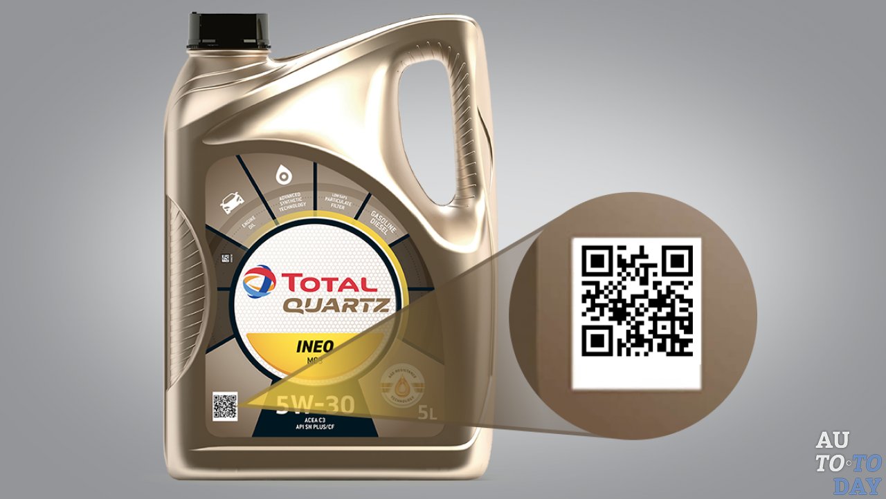 На канистрах Total и ELF нанесено статический, но защищенный QR-код, который позволяет подтвердить, что продукт был действительно изготовлен и разлит в канистры на заводах Total (проверка будет корректной при условии целостности защитного кольца и крышки).