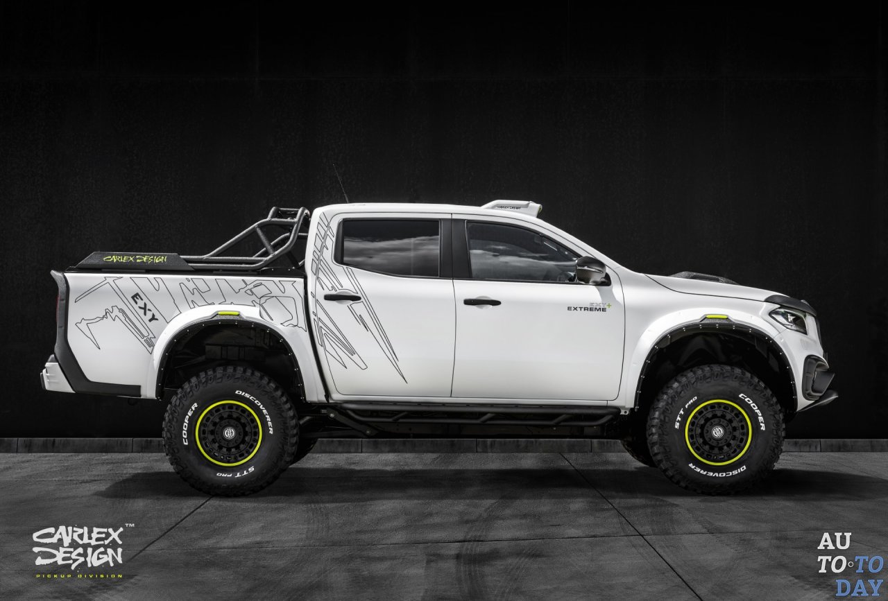 Пикап Mercedes-Benz X-Class существенно доработали в ателье Pickup Design, в результате чего машина даже получил собственное название – Exy Extreme+. Он включает в себя множество внешних, внутренних и механических модификаций, которые улучшают внедорожные характеристики пикапа, а также делают его более агрессивным.