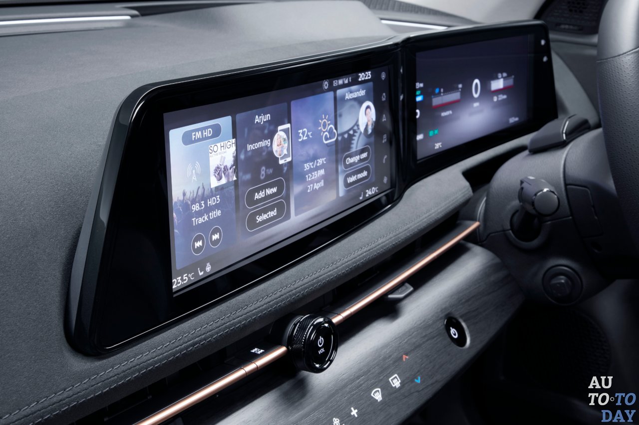 Гордостью модели Ariya является проекционный цветной дисплей – один из самых больших в мире (для автомобилей данного сегмента). На него выводится та же информация, что и на дисплей приборной панели. Но поскольку эта информация отображена на ветровом стекле в поле видимости водителя, ему не нужно отвлекаться от слежения за дорожной ситуацией.