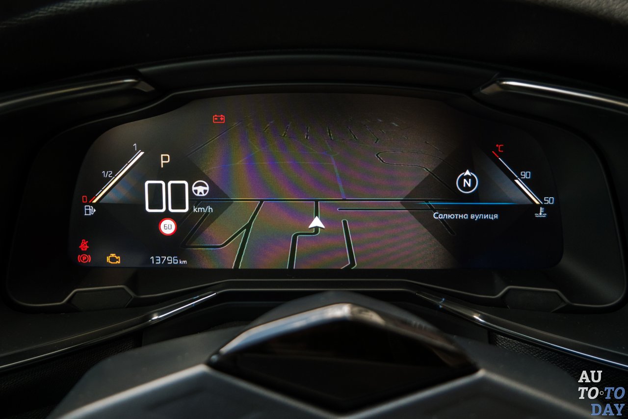 Вторая задача – это выбрать себе по вкусу вариант графики комбинации приборов. Вариантов предложено несколько, и всех их объединяет угловатая графика в духе логотипа бренда. Если хочется максимального интерактива, то выводите карту на весь 12,3-дюймовый экран, и – в путь. В сумерках среди прочих также появляется режим ночного видения. Машина подсвечивает желтым пешеходов и велосипедистов, чьи траектории движения не пересекаются с автомобилем. Если же авто замечает потенциальную опасность, то рамка становится красной, и опасный объект выдсвечивается фарами. Мультимедийная система с диагональю сенсорного экрана 12 дюймов поддерживает Android Auto и Apple CarPlay. С ее возможностями мы уже знакомы, к примеру, по модели Peugeot 5008.