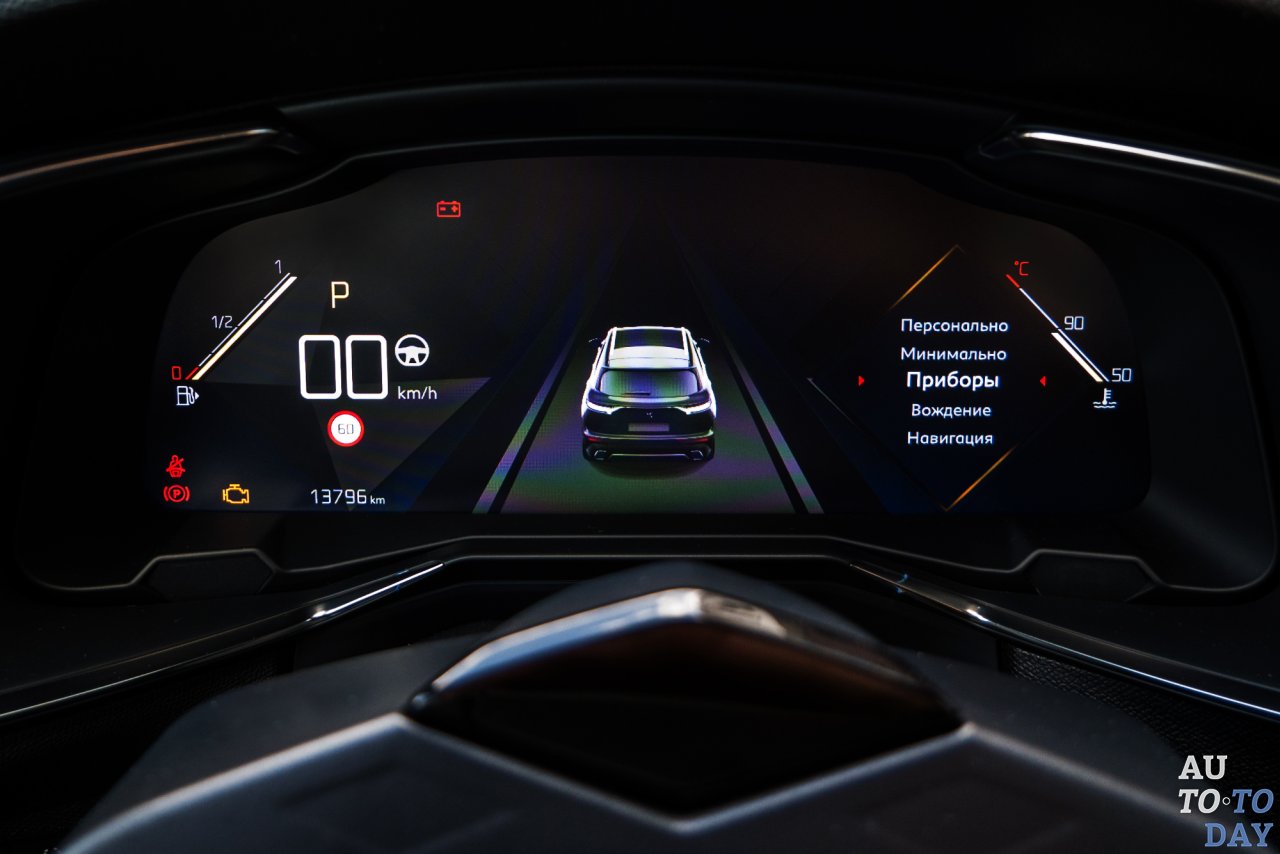 При длине в 4573 мм кроссовер не воспринимается, как большой и тяжелый в маневрировании на городских улочках автомобиль. Возможно, сказывается хорошая обзорность, датчики парктроника по периметру и пара камер кругового обзора. К последним, кстати, есть замечание по качеству картинки – она вовсе не изменилась с более доступных соплатформенных Peugeot 3008 и Citroen C5 Aircross.