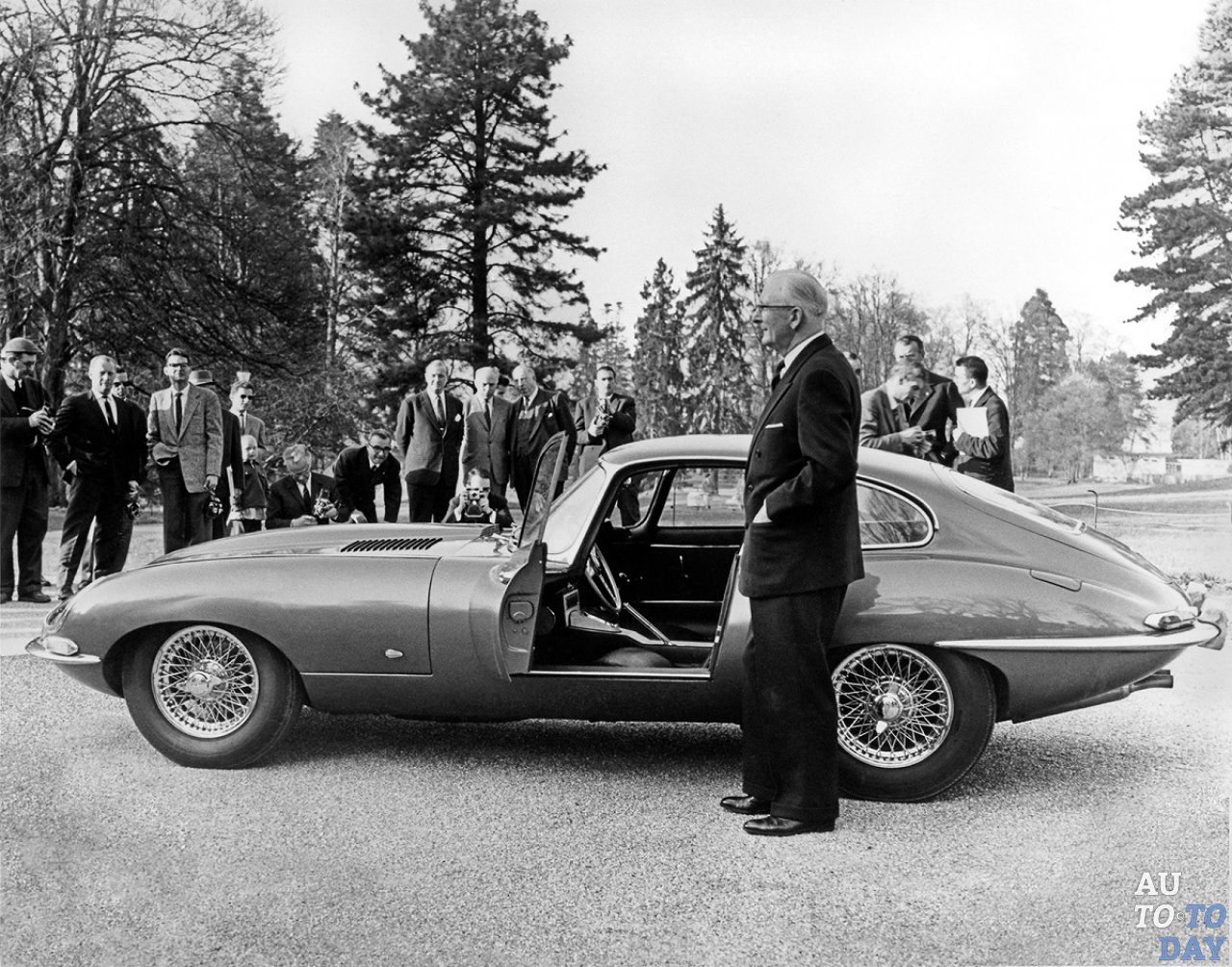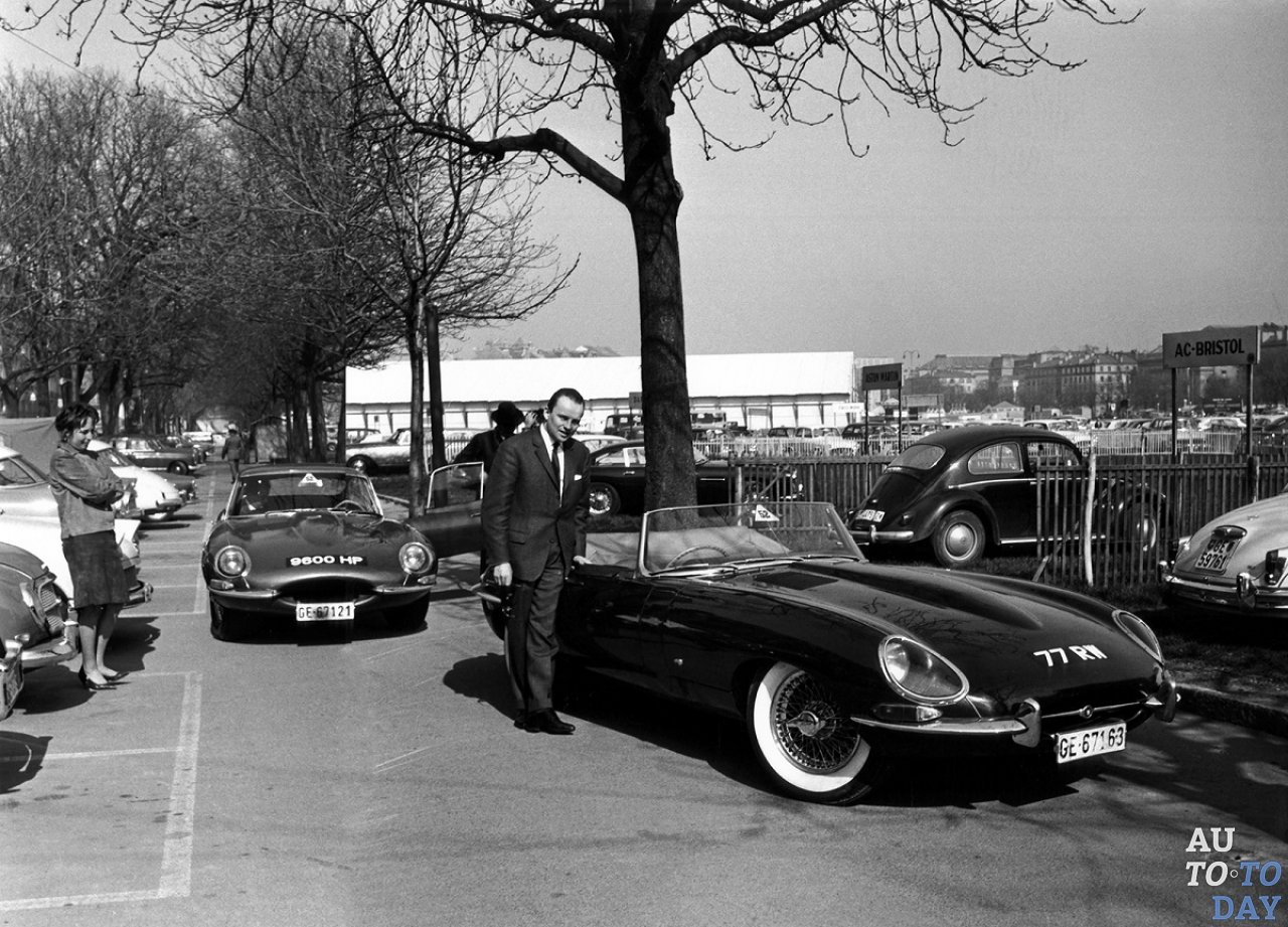 из первых 2-х E-type, представленных приглашенным гостям на площади Parc des Eaux Vives в Женеве.