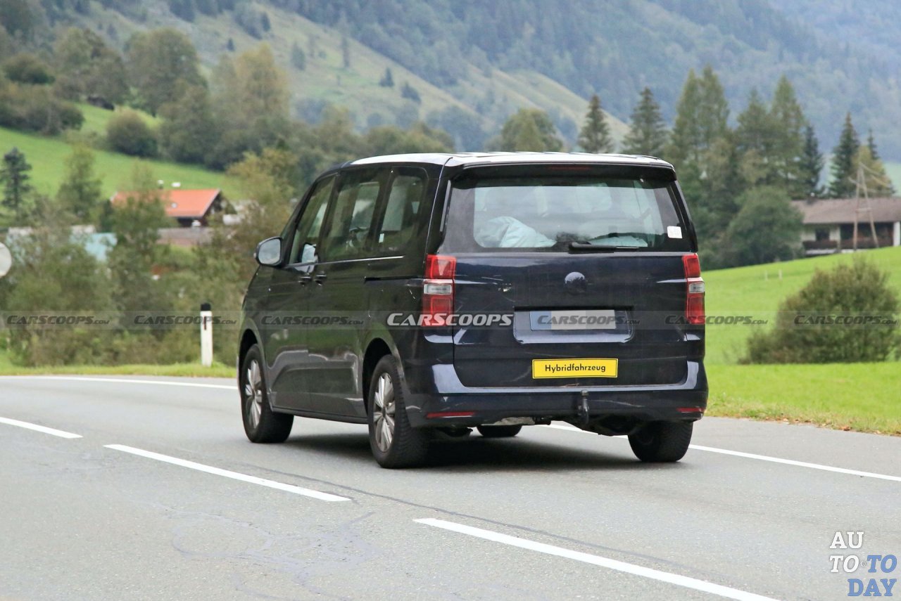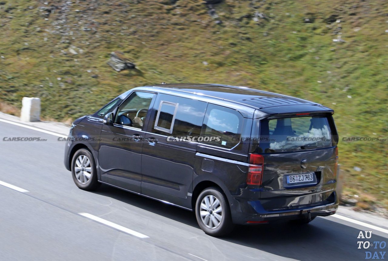 По сравнению с Volkswagen Multivan T6, T7 Multivan сохраняет квадратный вид, но выглядит немного ниже и, возможно, короче, хотя мы не можем быть уверены в этом, пока не увидим оба автомобиля вместе. Один из тестеров показал желтые наклейки с надписью «Гибридный автомобиль» и порт зарядки на переднем правом крыле, которые явно указывают на подключаемый гибридный силовой агрегат. Ожидается, что помимо PHEV, T7 будет предлагать 48-вольтовые умеренно-гибридные агрегаты, а также обычные бензиновые и дизельные двигатели.