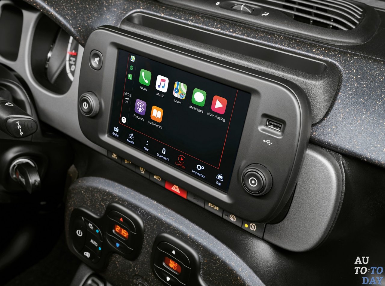 Новая Panda также отличается обновленной обивкой, измененной цветовой палитрой и новой «деревянной» приборной панелью. Модельный ряд обновленной Panda был расширен за счет нового варианта Sport. Созданный для молодых покупателей, он оснащен двухцветными 16-дюймовыми колесами, зеркалами и дверными ручками в цвет кузова. Последние также доступны в глянцевом черном цвете, если Panda заказывается с дополнительной черной крышей. Завершают внешний вид значки «Sport» и эксклюзивная краска Matte Grey.