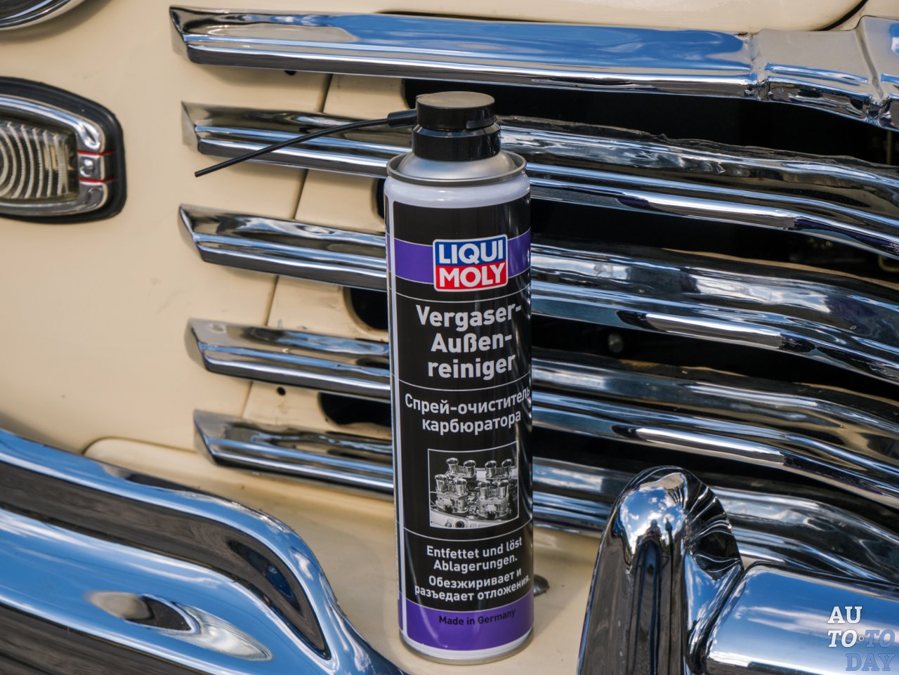 Перед реставраторами из одной дружеской мастерской была поставлена задача вернуть максимально свежий внешний вид карбюратору, который был выпущен в 1949 году. Сам узел был хорошо отрегулирован и установлен на отреставрированный автомобиль, оставалось его только отмыть. На помощь пришел спрей-очиститель карбюратора и всех его компонентов - Liqui Moly Vergaser-Aussen-Reiniger.