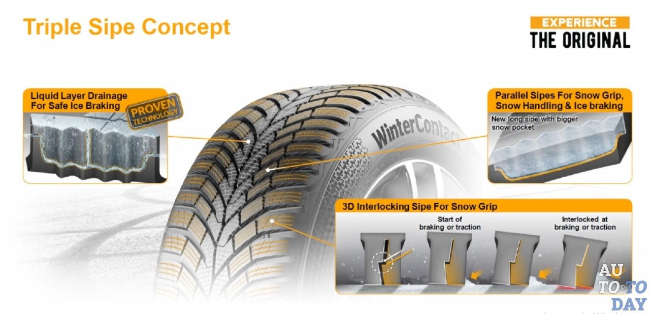 Уже не первый раз инженеры Continental применяют свойства слипания снега для улучшения сцепных свойств на снежной дороге. В новом протекторе сформированы большие снежные карманы. Они заполняются снегом, который в ходе качения колеса слипается со снегом на дороге, чем и повышается сцепление. Для этой же цели блоки протектора с 3D-ламелями разместили под более оптимальными углами, поэтому они лучше врезаются в снег.