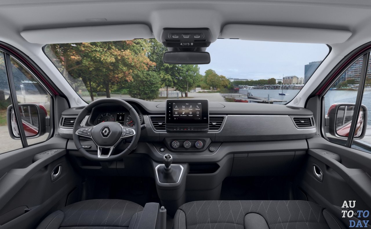 Панель приборов совершенно новая, хотя те, кто знаком с текущим Trafic, будут чувствовать себя как дома. Он по-прежнему имеет двухуровневую компоновку с 8-дюймовой информационно-развлекательной системой, расположенной посередине, с Apple CarPlay и Android Auto, беспроводной зарядной площадкой, физическими ручками для HVAC, новым трехспицевым многофункциональным рулевым колесом. Клиенты найдут отсеки на 86 литров для хранения в кабине, и до 1,8 куб. м грузового объема в кузове, и до девяти пассажиров.