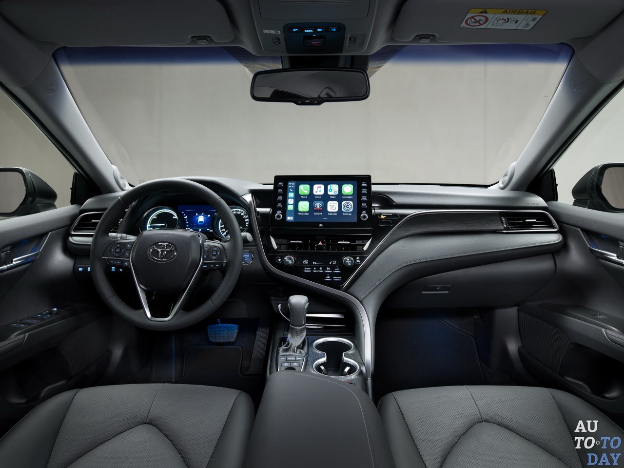 Кроме того, Toyota добавила недавно разработанные 17- и 18-дюймовые легкосплавные диски, а также новую окраску Deep Metal Grey и разноцветные светодиодные задние фонари. Camry Hybrid 2021 года также получит новый 9-дюймовый информационно-развлекательный сенсорный дисплей, который теперь расположен выше в приборной панели для улучшения эргономики. Новая система оснащена физическими кнопками для облегчения использования в любых условиях вождения и включает более быстрое программное обеспечение и лучший отклик экрана, а также стандартные функции Apple CarPlay и Android Auto.