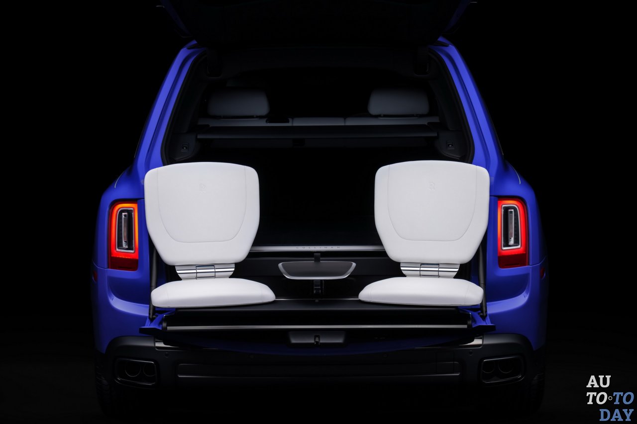 Что касается внедорожника Cullinan, он имеет отделку Mirabeau Blue снаружи и кожу Arctic White внутри, а также присутствует немного Lime Rock Green для дополнительного контраста. Здесь дизайнеры черпали вдохновение в экзотической бабочке Rhetus Periander.