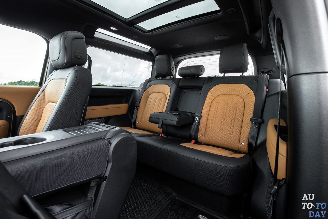 пассажиру спереди столько же пространства, сколько и в Defender 110. Интерьер