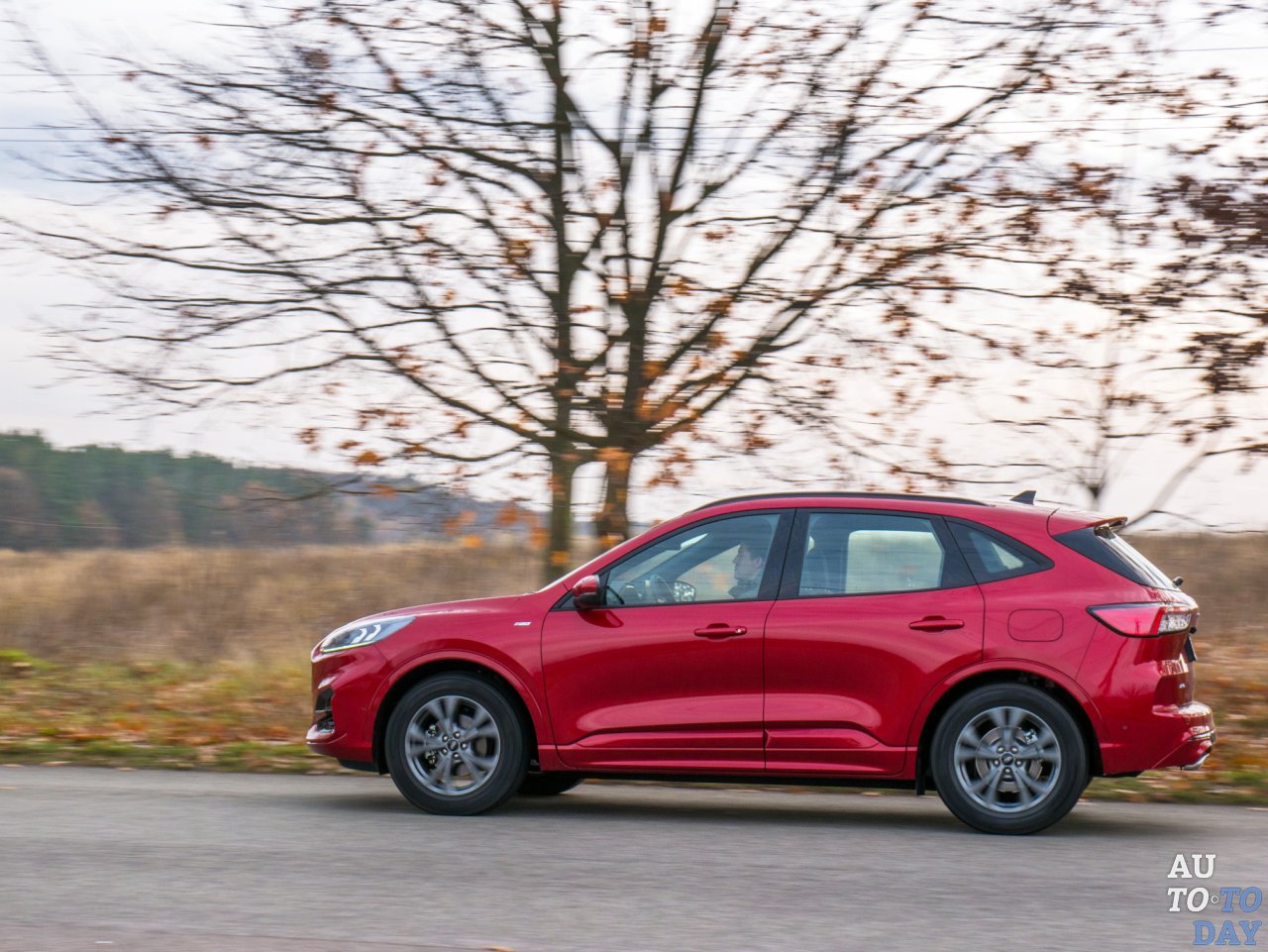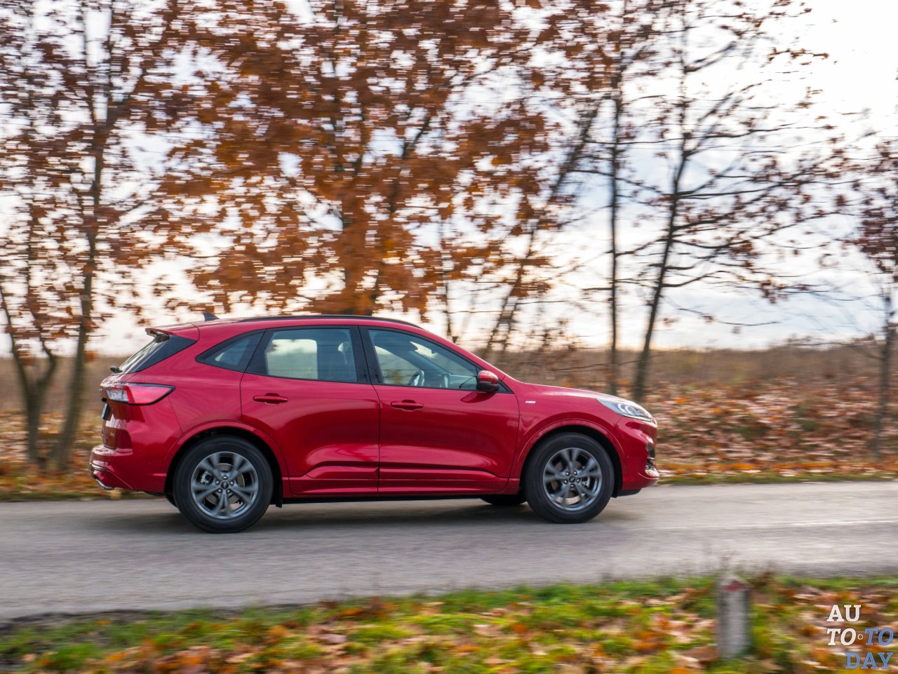 Для «Куги» доступно пять вариантов силовых агрегатов, из которых два бензиновых и три дизельных. Примечательно, что в линейке есть по одному бензиновому и дизельному гибриду. Тестовый автомобиль оснащен 2,0-литровым турбодизелем на 190 л. с. и максимальным крутящим моментом в 400 Нм. Двигатель работает в паре с 8-ступенчатой автоматической коробкой передач. В вопросе динамики к Ford Kuga никаких вопросов, он очень расторопный. Первую «сотню» с места набирает за 8,7 секунды, что является одним из лучших показателей в классе. Это также быстрейшее значение разгонной динамики среди всех версий кроссовера, хотя обычно гибриды показывают себя лучше.