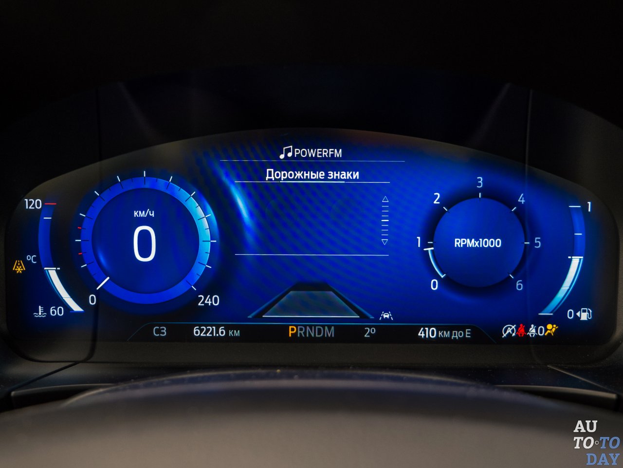 Отличительная черта нашей комплектации – это 12,3-дюймовый дисплей вместо аналоговой комбинации приборов. Что про него можно сказать? Он не только рисует хорошо читаемые показатели в высокой резкости, но и влияет на настроение водителя. Стоит сменить режим, например, с «Эко» на «Спорт», как меняется и все цветовое оформление щитка приборов. Функционал «приборки» не позволяет вывести карту навигации на весь экран, но между виртуальными колодцами приборов рисуются понятные подсказки.