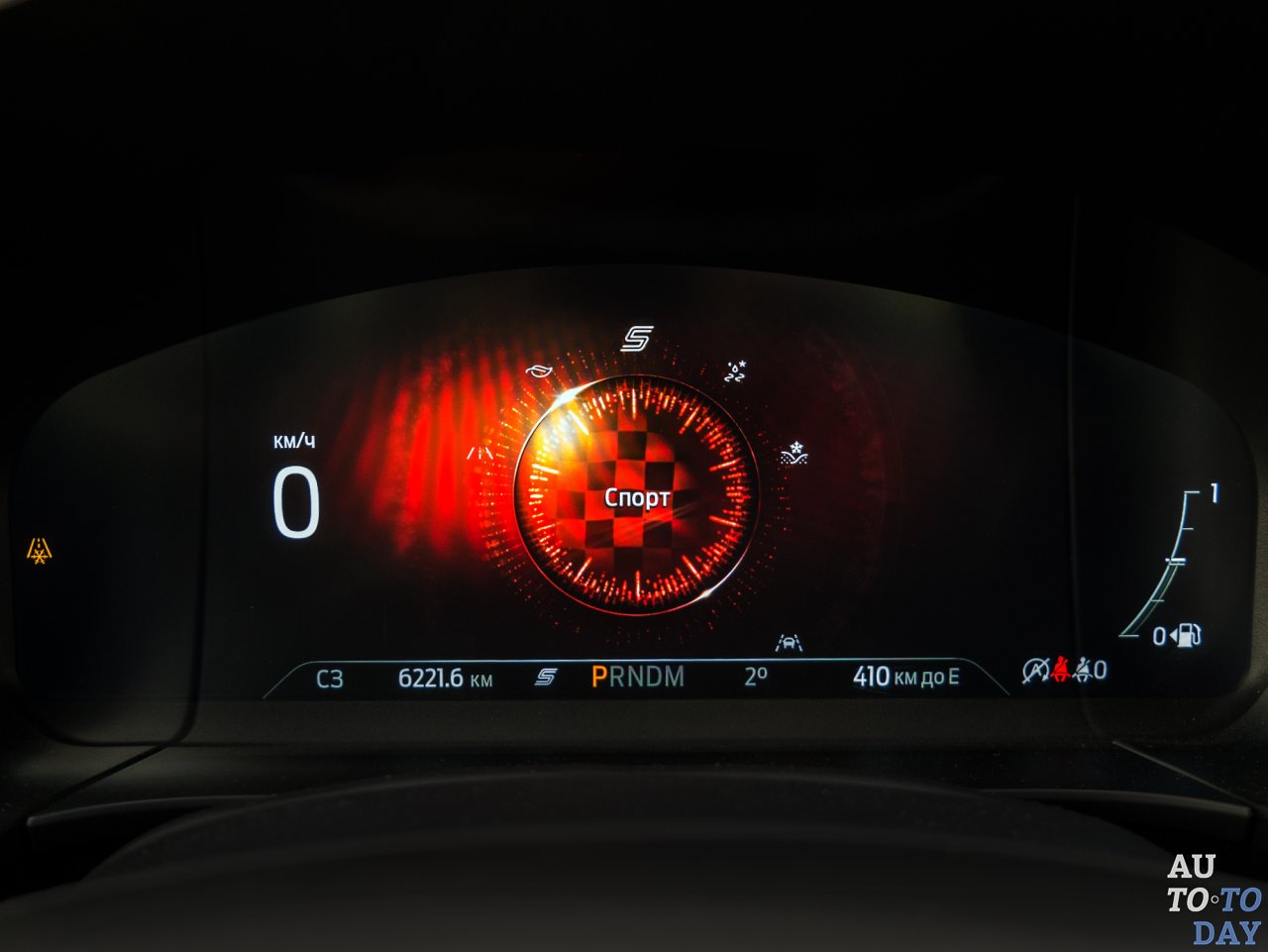 Как мы уже и говорили, в комплектации ST-Line не готов герой нашего теста к покорению бездорожья. Хотя в настройках режимов движения имеются и «Снег», и «Скользкая дорога». При активации этих режимов чувствуется, что машина старается пораньше переключаться на повышенные передачи, но отключать систему курсовой устойчивости необходимо всегда самостоятельно. Да и экспериментировать на открытом грунте мы не стали, характер машины этому не способствует.