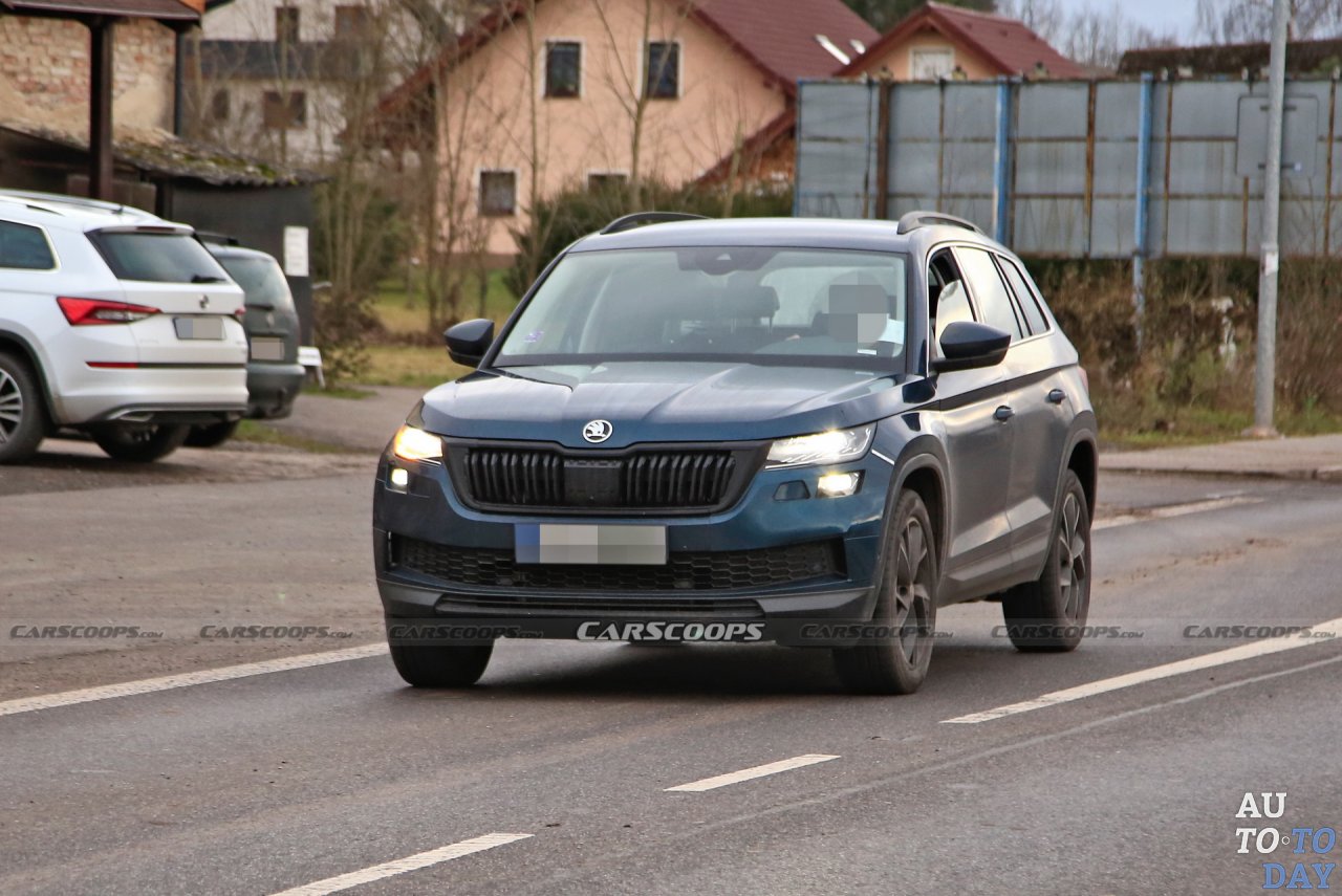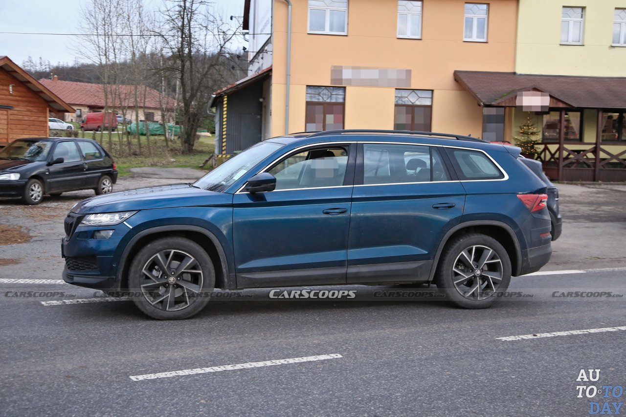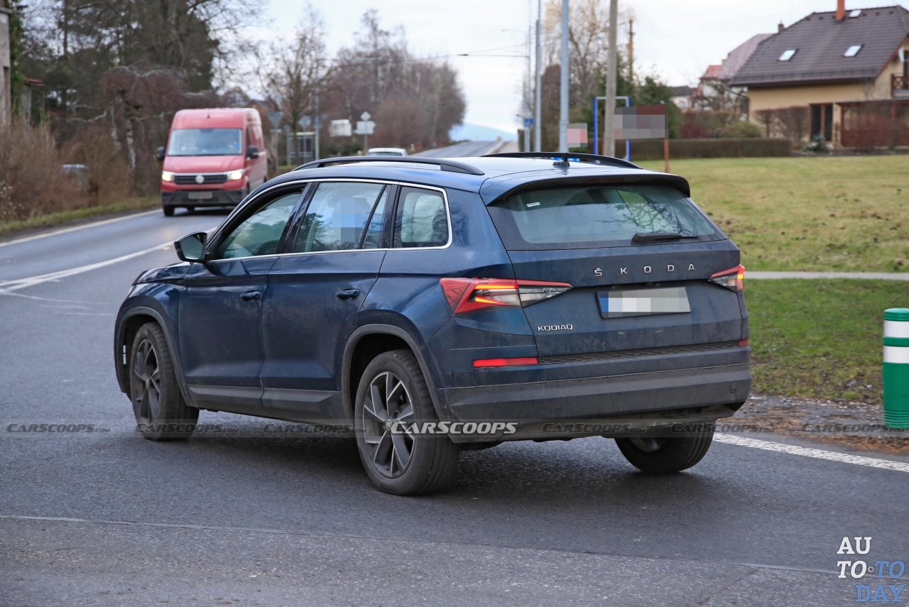 Логотип автопроизводителя был удален с задней двери и заменен надписью «Skoda», которая сближает обновленный Kodiaq с некоторыми из его более современных собратьев, а значок «Kodiaq» расположен на левой стороне. Установленное на крыше крыло немного больше, задние фонари новые, а бампер и диффузор, похоже, унаследованы от текущей модели.