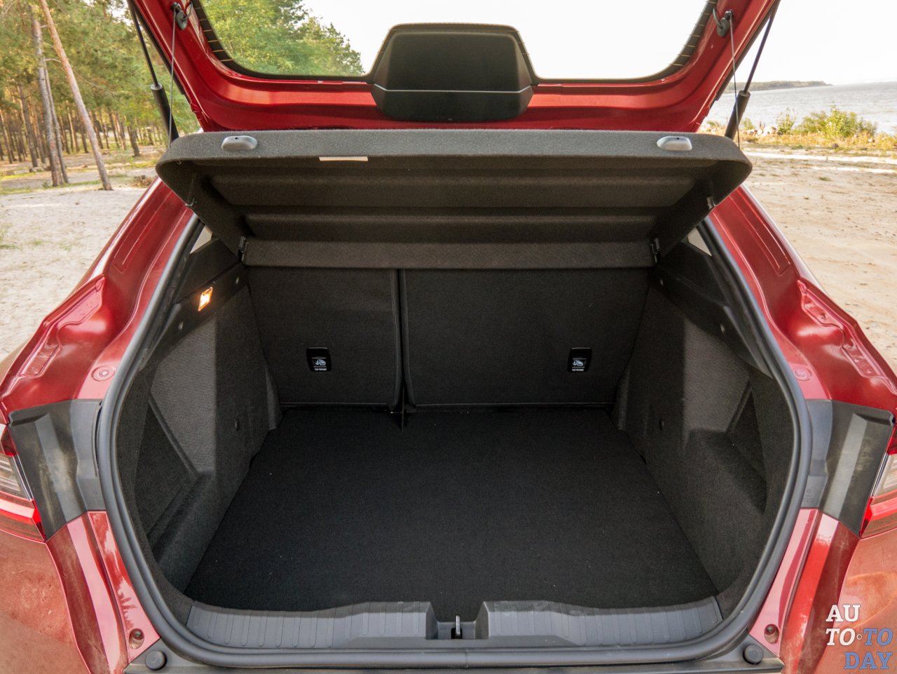 Багажный отсек при первом взгляде необычайно длинным. В переднеприводной версии походное значение составляет 508 литров, в версии 4х4 – 409 литров. Если сложить спинки второго ряда, то получим уже 1234 литра. Кстати, провернуть эту манипуляцию можно как из салона, так и со стороны багажника. Под полом спрятано полноразмерное 16-дюймовое запасное колесо. Несмотря на большой вес крышки, она закрывается одним движением. Правда, ручка закрывания расположена справа, что вызовет определенный дискомфорт у левшей.