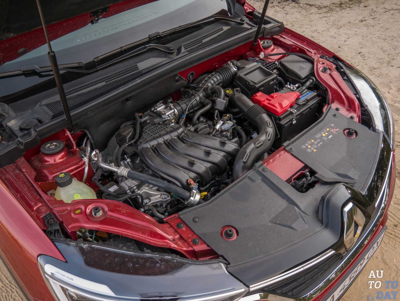 На тестовом автомобиле установлен 1,6-литровый атмосферный бензиновый двигатель. Его 114 сил мощности и 156 Нм максимального крутящего момента автомобилю хватает с большим трудом, особенно когда кроссовер хорошо пригружен. По трассе с крейсерской скоростью в 90-95 км/ч расходометр замирает между значениями 6,7-6,9 литра на 100 км пробега. В городе же аппетит возрастает на уверенные 1,4-1,7 л/100 км. В сочетании с «бензинкой» трудится бесступенчатый вариатор.