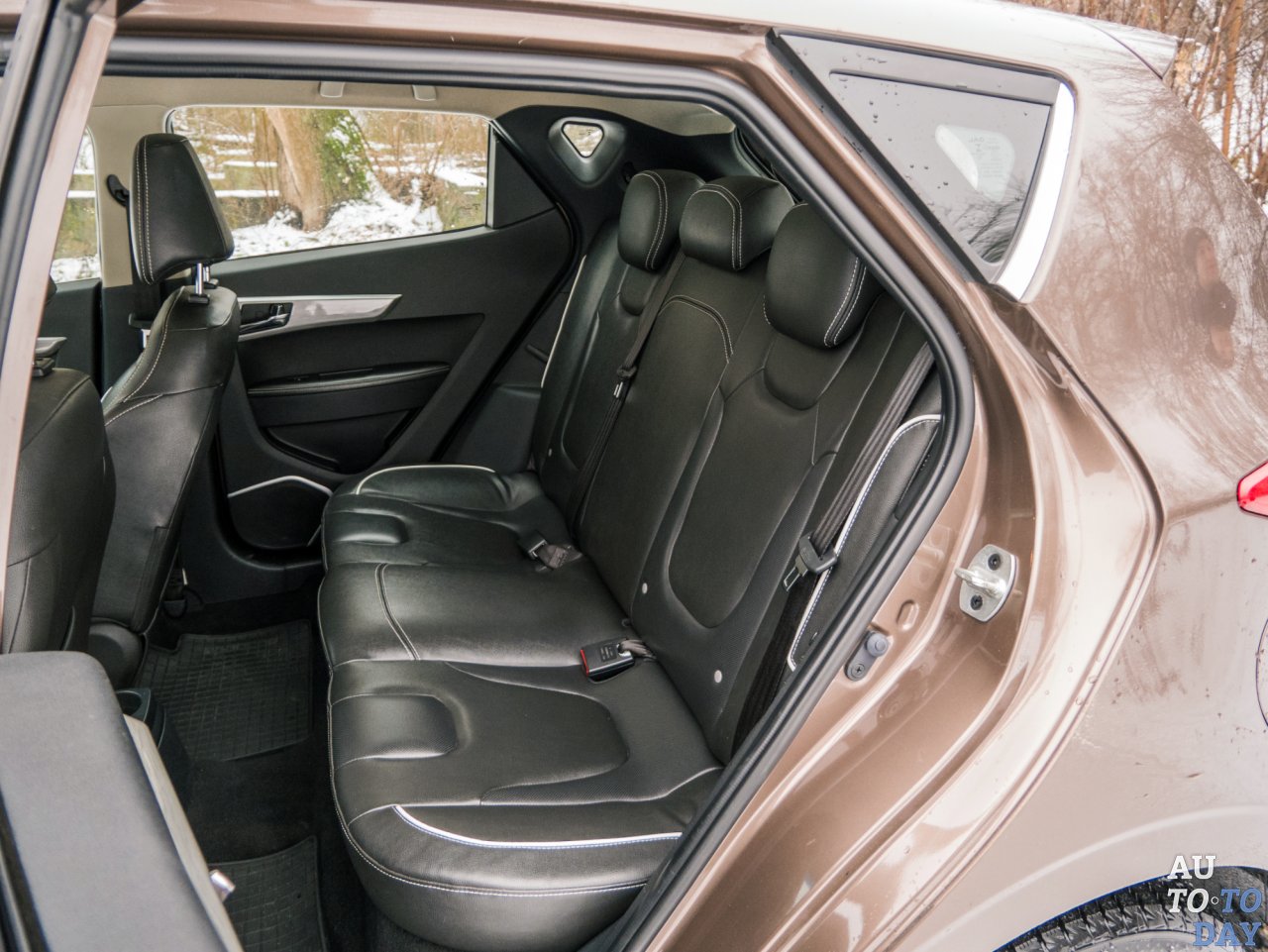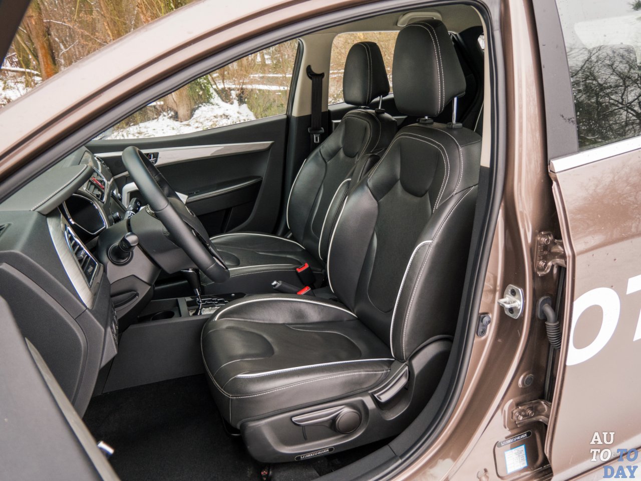 Кресла обоих рядов обтянуты очень плотным и добротным кожзамом. По фактуре материалы напоминают кожу на старых «американцах» - все выглядит очень надежно и крепко. Отметим, что тестовый автомобиль на момент нашего знакомства имел пробег в 42 000 км, ранее он очень усердно трудился на клиентских тест-драйвах. Несмотря на свой серьезный пробег, никаких посторонних шумов и вибраций в салоне мы не расслышали. Небольшой экзамен на выносливость можно считать сданным.