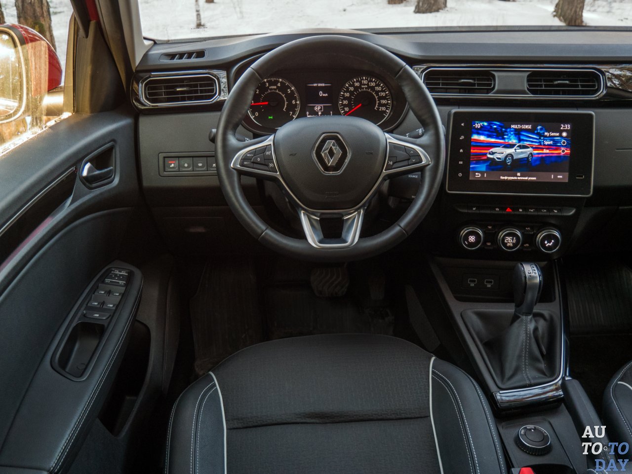 По поведению полный привод схож с «Дастером». Нашим испытательным полигоном для сравнений стал очень любопытный кусок сельской пустой дороги. На заснеженной дороге с крутым подъемом при плюсовой температуре образовалась снежная «каша». Мы были уверены, что под снегом неплохой асфальт. Но «копаться» и насиловать трансмиссию желания не было. Только на переднем приводе машина медленно двигалась вперед, но постоянно пробуксовывала. Но стоило нам включить режим «Авто», как почти моментально подключилась задняя пара колес, и уже без букса машина поднялась на гору.